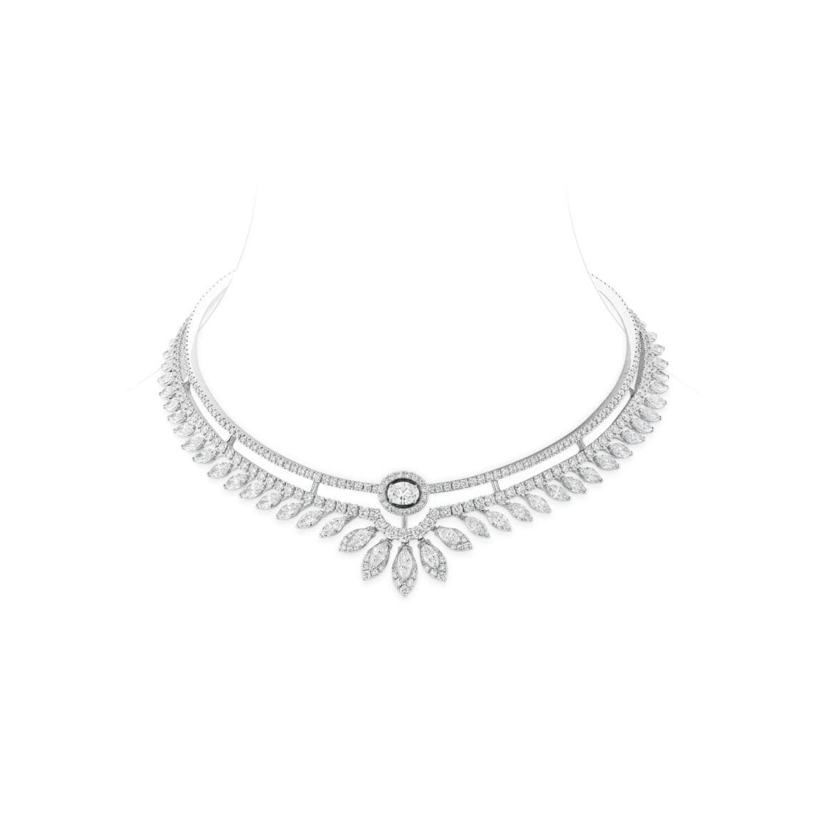 Drawing inspiration from the serene beauty of sunrise, the Alba collection by Sartoro Genève symbolizes new beginnings, hope, and happiness. Abu Deif’s ensemble, comprising an exquisite choker, earrings, a bangle, and rings, was crafted in 18K white gold and adorned with the finest diamonds. Each piece reflected Sartoro’s dedication to blending contemporary design with the eternal allure of nature’s wonders.