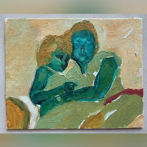 “I’m currently working on a series called “Content addressable data.” It consists of very tiny format (10×12) oil paintings created based on family snapshots. Prints and archival photographs are objects that carry an energetic field of emotions. For they symbolize the past and tell a story; pictures are the reliable source from which we can recreate and recall our childhood memories. But because nowadays nobody ever prints anything and photos are so banalized, I decided to create a work that would replicate the job of the photograph. A painting the size of a picture and that you can put in your pocket if you like.” – Fabiola Chiminazzo, Artist