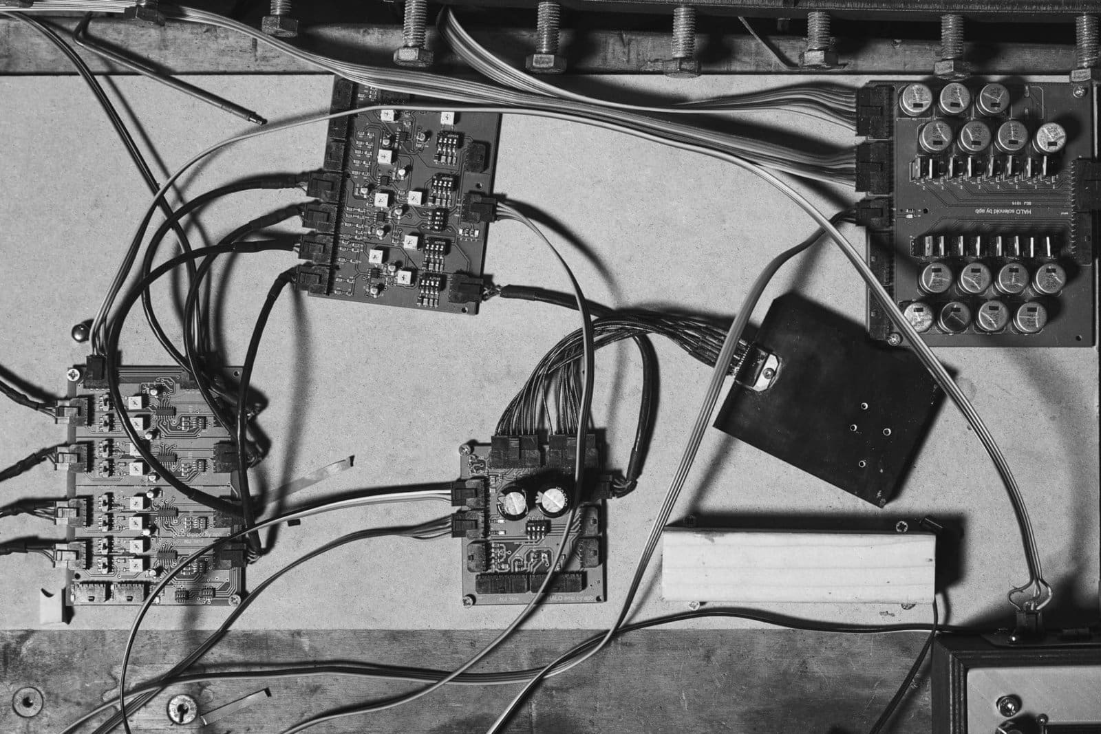 Standing four metres tall, HALO consists of a ten-metre-wide cylinder-shaped structure whose interior is encircled by a 360-degree screen and by vertical piano wires. Projections appear on the screen that graphically illustrate a series of slowed-down subatomic particle collisions that ordinarily occur almost at the speed of light. The predictions also trigger small hammers to hit the surrounding piano wires, emitting an all-encompassing vibration. This combination creates the immersive audio-visual experience.