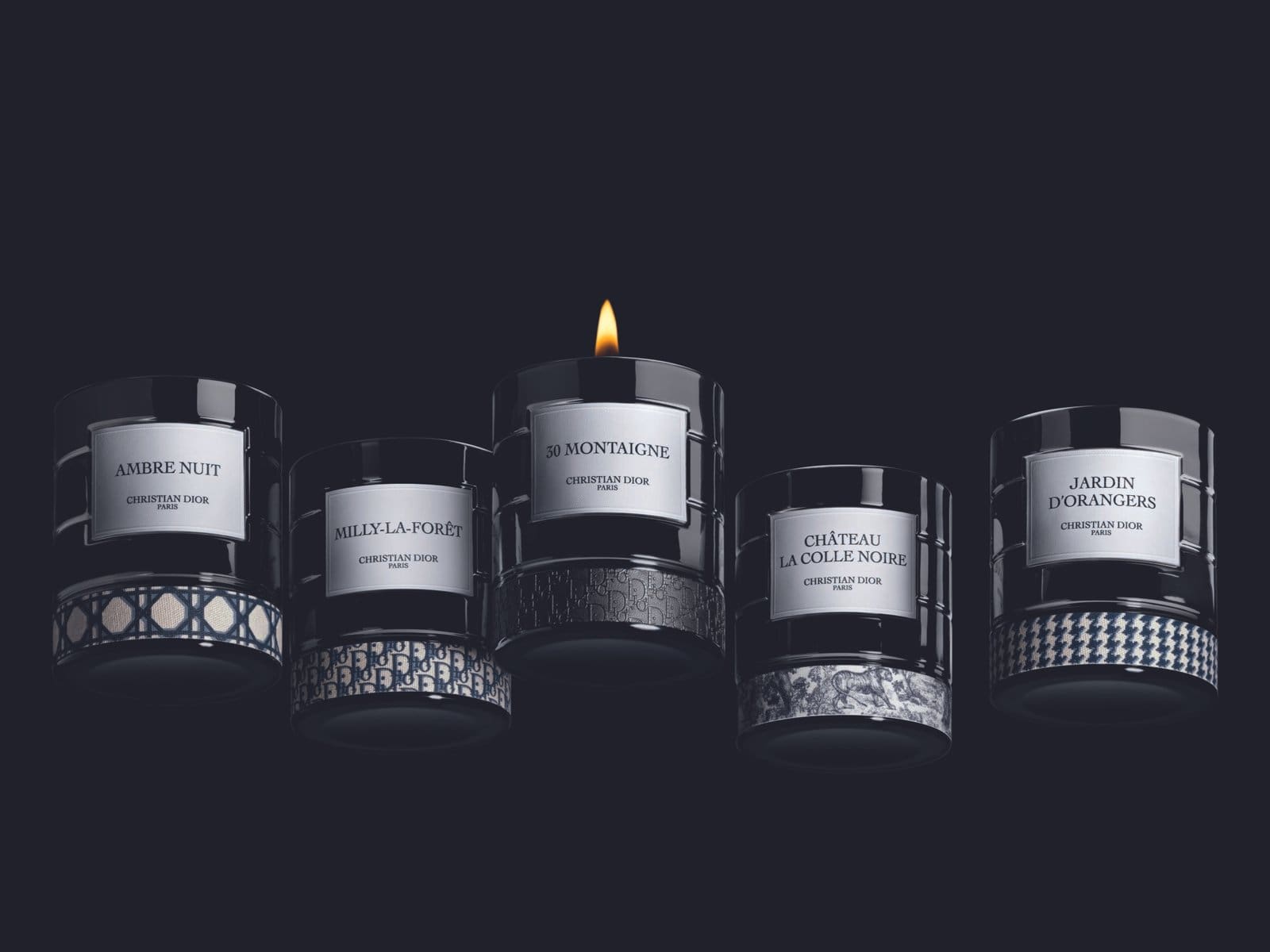 A distinctive feature of the collection lies in its modular design. The black lacquered glass base can be removed and replaced with couture-inspired holders adorned in the House’s most iconic motifs. From historic Houndstooth and classic Cannage to Toile de Jouy and the bold Oblique signature, each base adds a personalised layer of craftsmanship and visual intrigue.