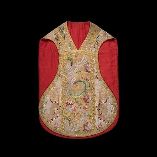 The role of these priestly vestments was to contribute to the dignity of the rites being celebrated. The names of the generations of designers, master craftsmen and artisans who produced these works of the weaver’s art remain largely nameless. Many of these textiles were cared for and loved as heirlooms in churches and monastic orders for centuries. Their equivalents are found in the world’s leading museums.