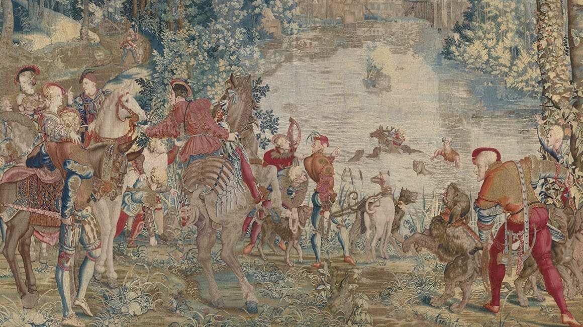 - four tapestries depicting The Hunts of Maximilian from an original drawing by Bernard van Orley from France (1665-1674) which are part of series of tapestries currently in Musée du Louvre’s collections, depicting the hunting parties of Archduke Maximilian, the Habsburg duke of Brabant, commissioned by the Habsburg court. The new acquisition represents the hunt in September
