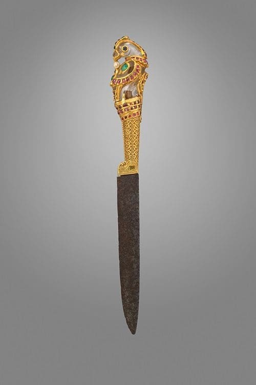 - a rock crystal knife with a jewelled parrot from India (ca. 1600), a ceremonial knife that is as much a piece of jewellery as it is a weapon