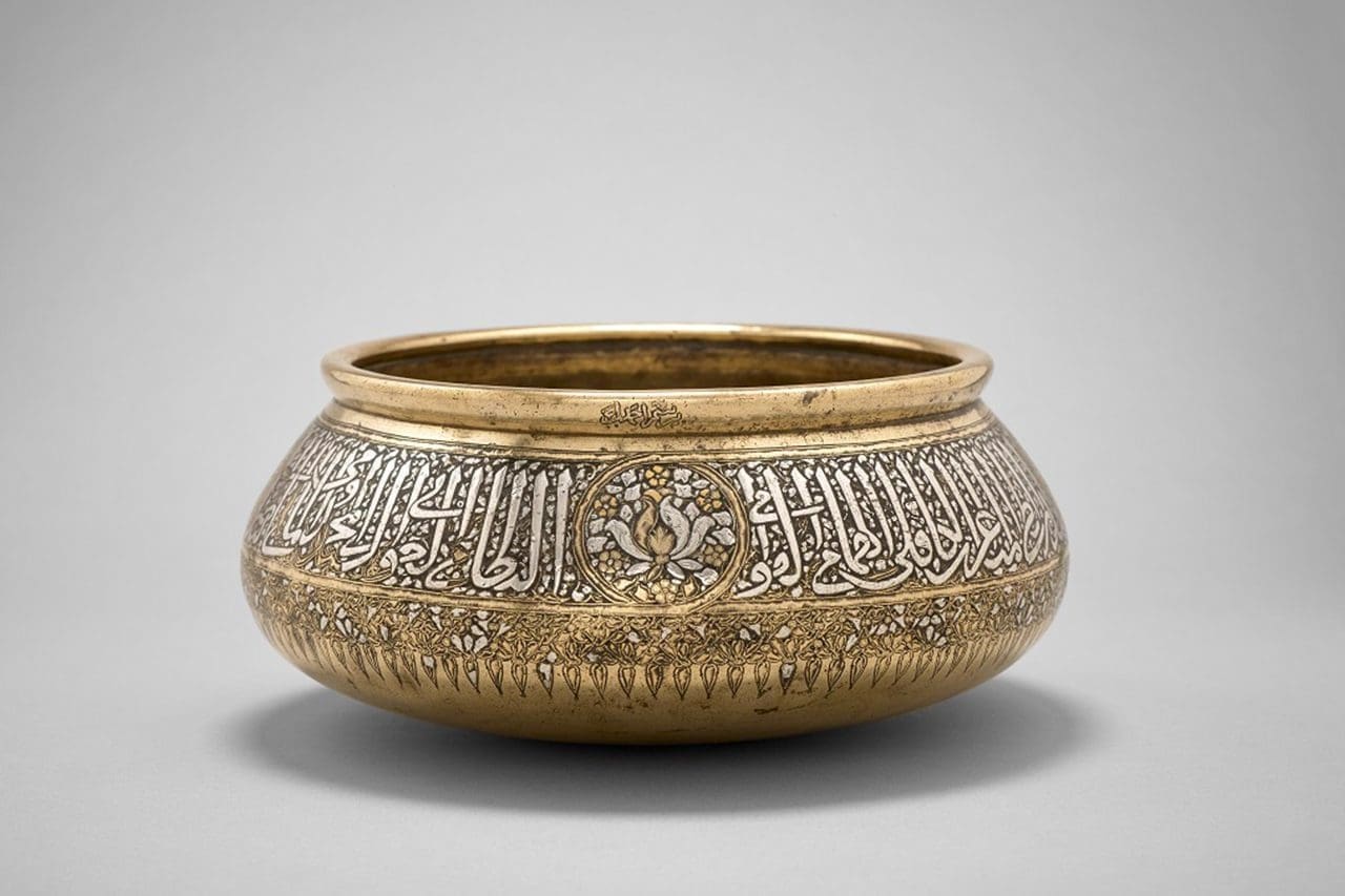 - a Mamluk Bowl from Egypt or Syria (late 13th or early 14th CE), an example of early metalwork that flourished under the Mamluks, at a time where the inlaying tradition, one of the jewels of the arts of Islam, was developed, commissioned by Ahmad ibn al-Jundi al-Tarrab, a high ranking Mamluk officer under the sultanate of al-Malik al-nasir Muhammad ibn Qala’un (1299-1340)