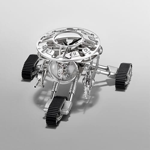 MB&F and L’Epée 1839 present Grant, a triple-tracked, Mad-Max-cross-Transformer robot clock on a mission: to “transform time so that you can relax and enjoy it.“