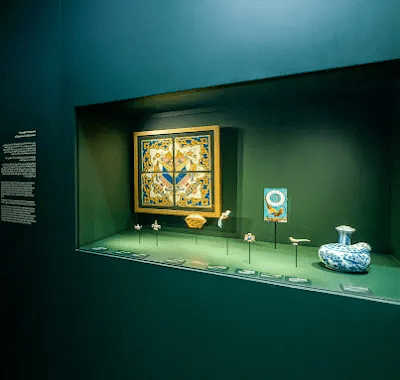 The scenography mirrors the flight of a bird through colour and light — from earthy browns to celestial blues — creating a sensory exploration of art, heritage, and craftsmanship. Pieces range from intricate peacock brooches and falcon motifs to terracotta figurines and calligraphic works, revealing how birds have long symbolised transformation and transcendence across cultures.