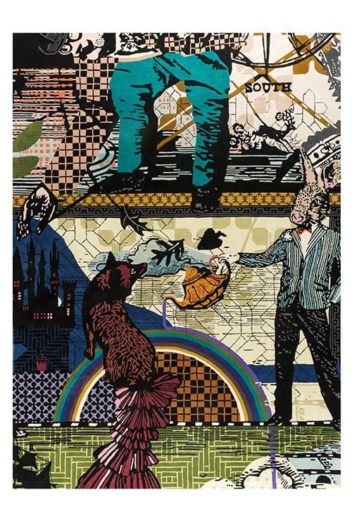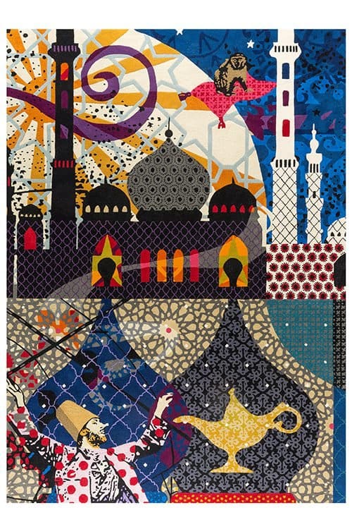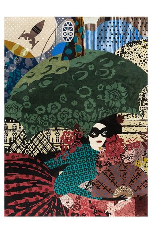 From London to Paris, and on to Istanbul, are a set of three rugs that feature a large illustrated fresco inspired by the three great cities. The motif can also be found on the small cushions, and on the interiors of the mysterious Wonder Cabinet.
