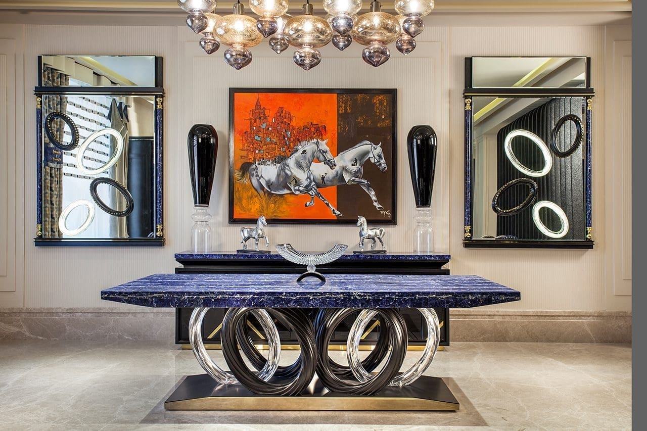 Anca (pronounced unk’a) is the group’s furniture brand and manufacturer. It also handles all the artwork and semi-precious materials. “We have a catalogue-based production and sell a lot of our products through retail. We generally launch two collections each year which are semi-customizable in terms of fabric, colour, wood, sizes and so on. We also have bespoke designs that are custom built for particular projects,” explains Ujjwal.