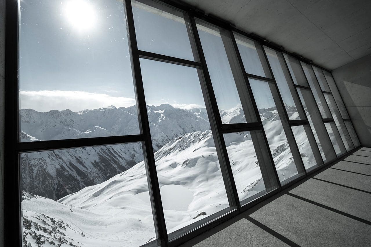 The designers wanted the location and its pristine natural Alpine surroundings to be present in the building’s interior; thus, the decision was taken not to use air conditioning. Visitors are, therefore, advised to wear warm clothes, even in the summer months.