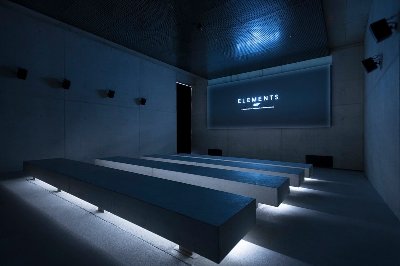 Visitors enter the installation through the “Barrel of the gun” corridor which alludes to the opening sequence of Spectre. It leads to the outdoor “Plaza,” and then on to the “Lobby,” where director Sam Mendes welcomes visitors and explains why Sölden was chosen as a location along with other “insider information.” The “Mirror Cabinet” reminisces the memorable scenes of all Bond actors, from Connery to Craig, followed by a 360-degree visual experience.