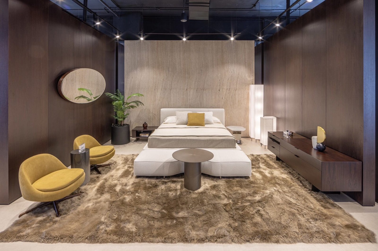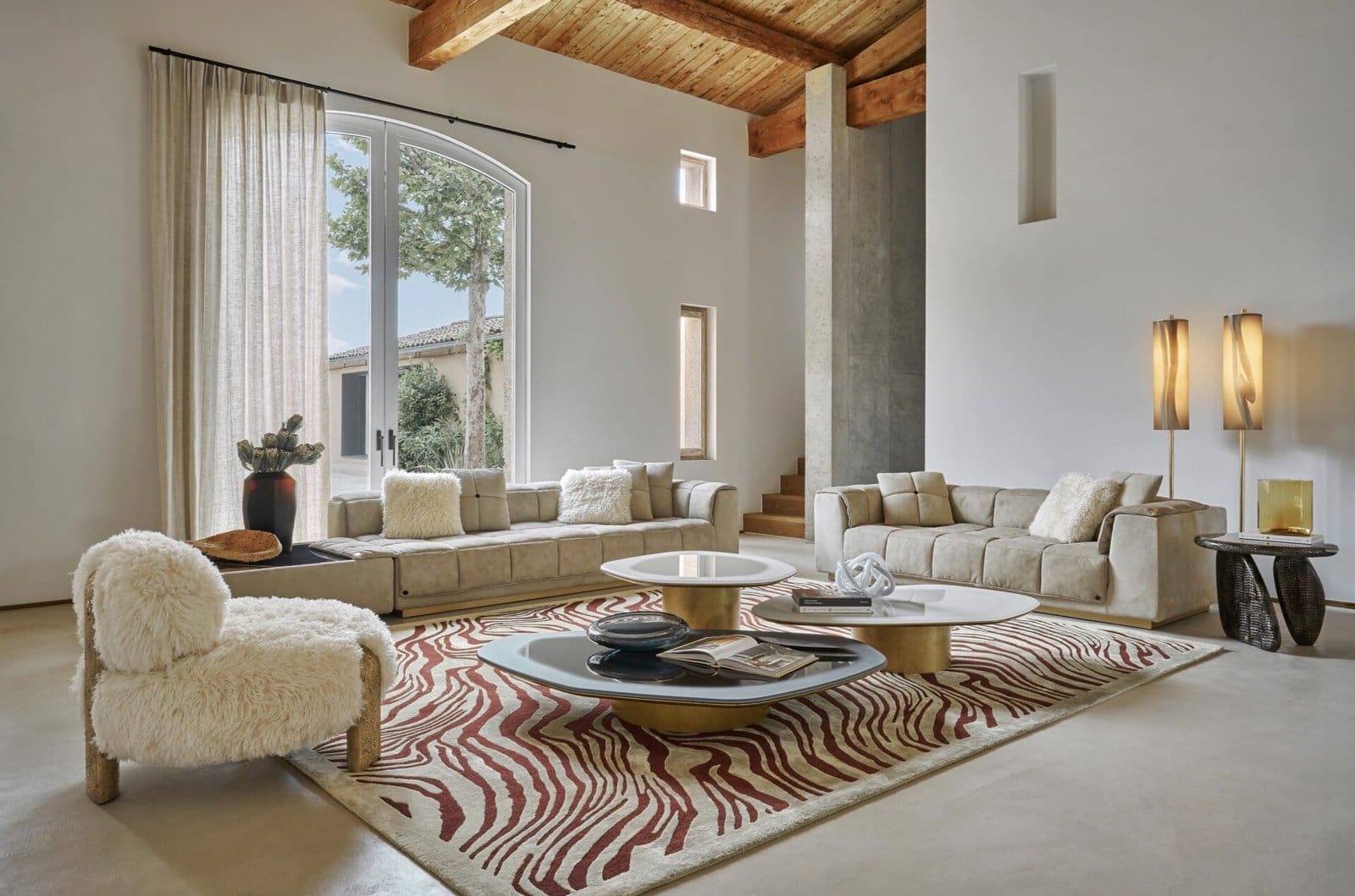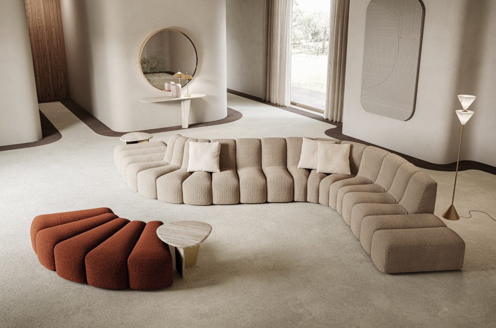 Curved silhouettes and sculptural forms extend beyond statement sofas into architectural and accent details. The rise of the occasional sofa reflects a move toward expressive flexibility, introducing character in hallways, bedrooms or informal corners. These smaller-scale pieces soften spatial geometry while encouraging playful experimentation with form and texture.