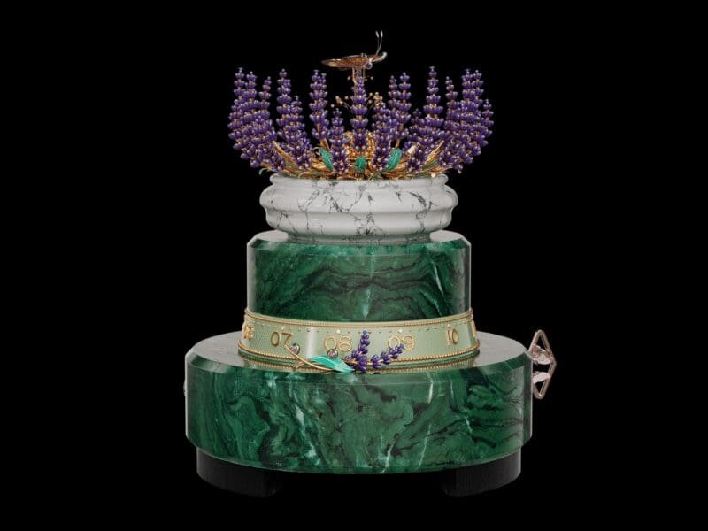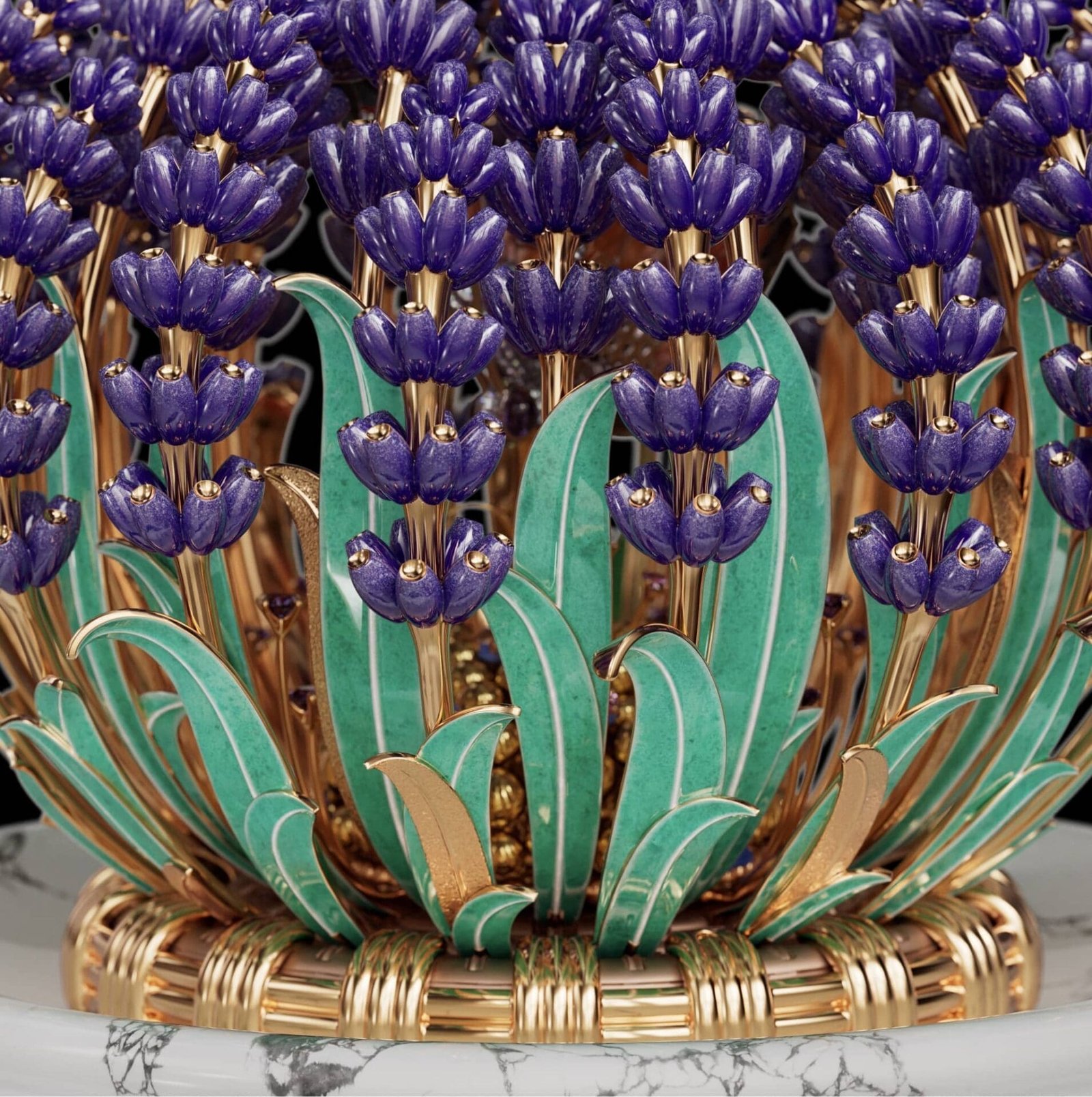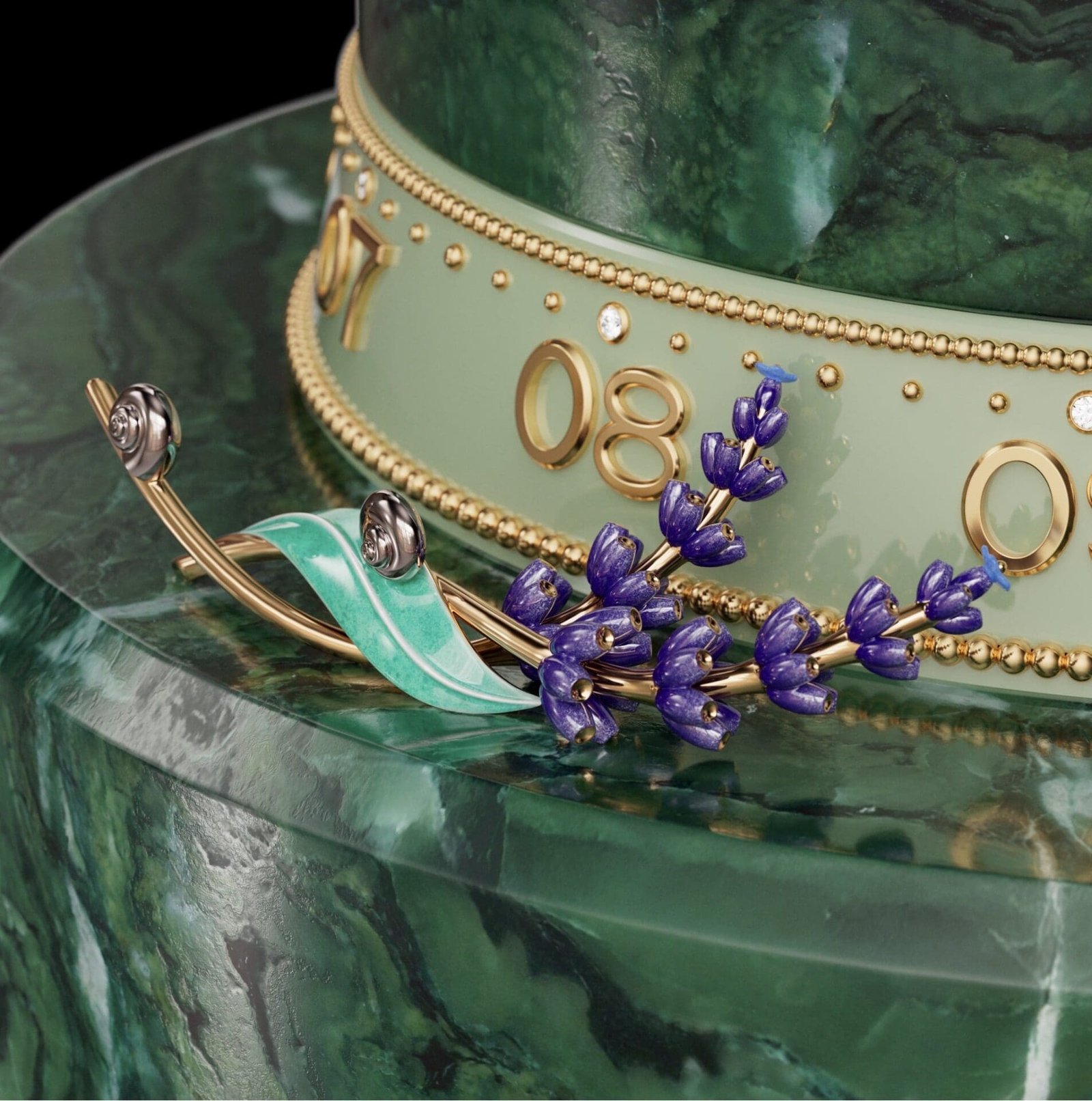 Behind the enchantment lies exceptional savoir-faire. The Brassée de Lavande was assembled at the Maison’s Art Mechanics Workshop in Sainte-Croix, where craftsmen dedicated years to perfecting both the movement and the choreography of its animation. Every sprig is shaped and lacquered by hand, a process involving layering, sanding, airbrushing, and glazing to create natural depth. Across workshops in Geneva, Sainte-Croix and Paris, jewellers, enamel artists and mechanical specialists collaborated to merge tradition and innovation in perfect balance.
