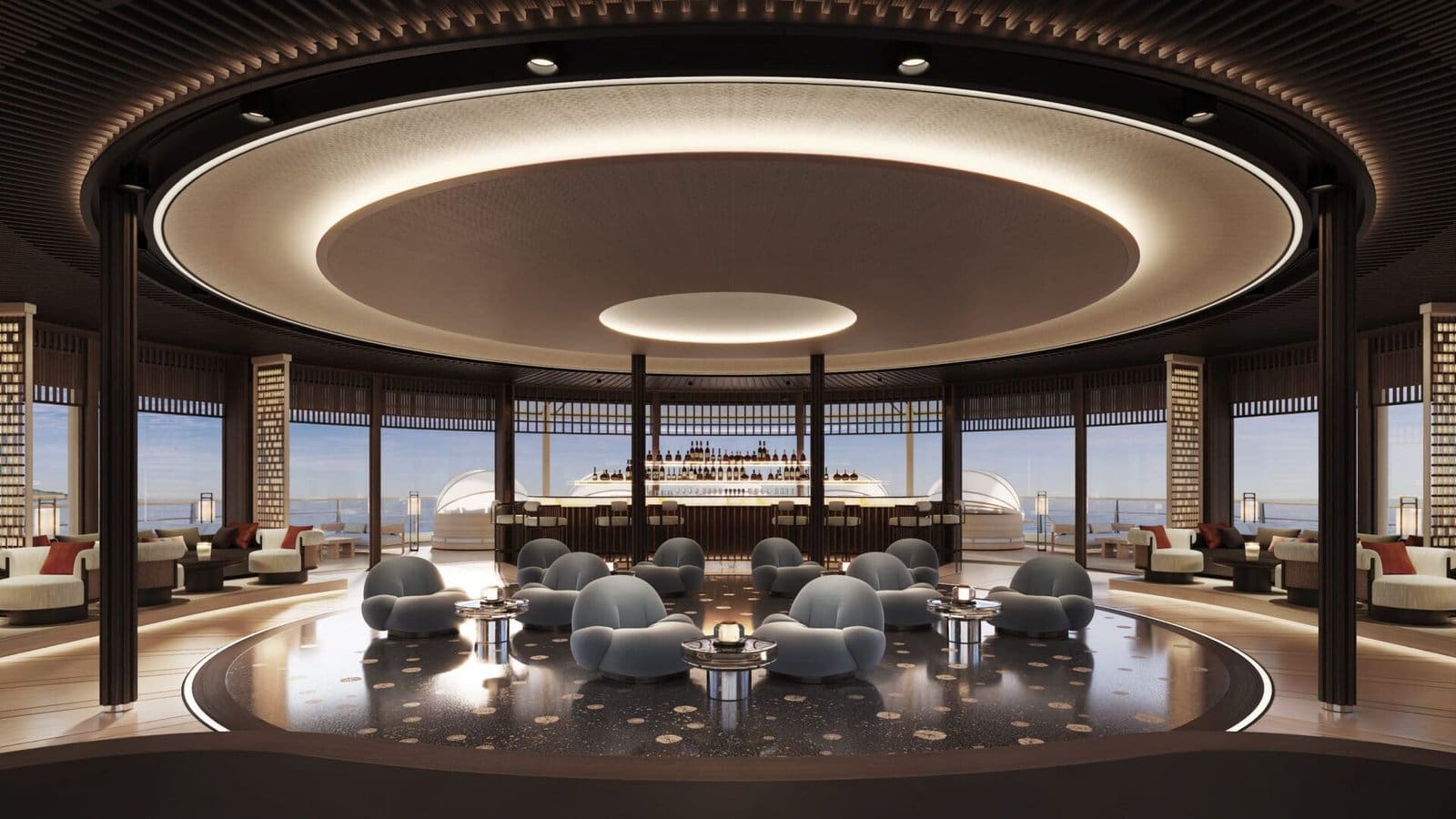 Currently under construction, Amangati has been conceived as a floating sanctuary rather than a conventional superyacht. Stretching 180 metres across nine decks, the vessel has been designed to prioritise spatial generosity and privacy, accommodating just 94 guests. Each suite opens onto a private terrace, reinforcing a sense of personal retreat while maintaining a constant dialogue with the sea. Light, openness and quiet flow define the experience.