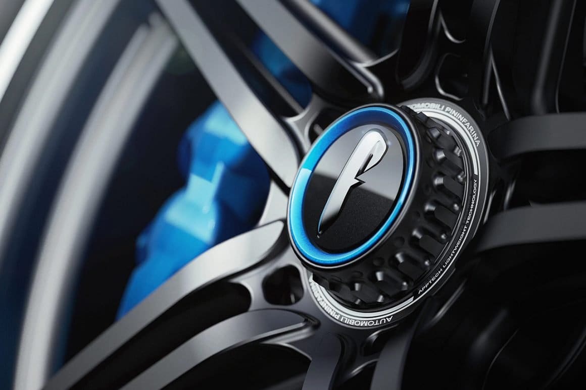 The Anniversario’s handling dynamism is further sharpened by a reduction in unsprung weight of almost 10 kg, thanks to a new wheel design which features centre-lock forged aluminium wheels. The rear wheels grow from 20-inch to 21-inch. Together with the performance-oriented tyres, the new rims enable the car to achieve its top speed of 350 km/h (217 mph). The optional ‘Impulso’ wheels complement the options programme available for Battista.