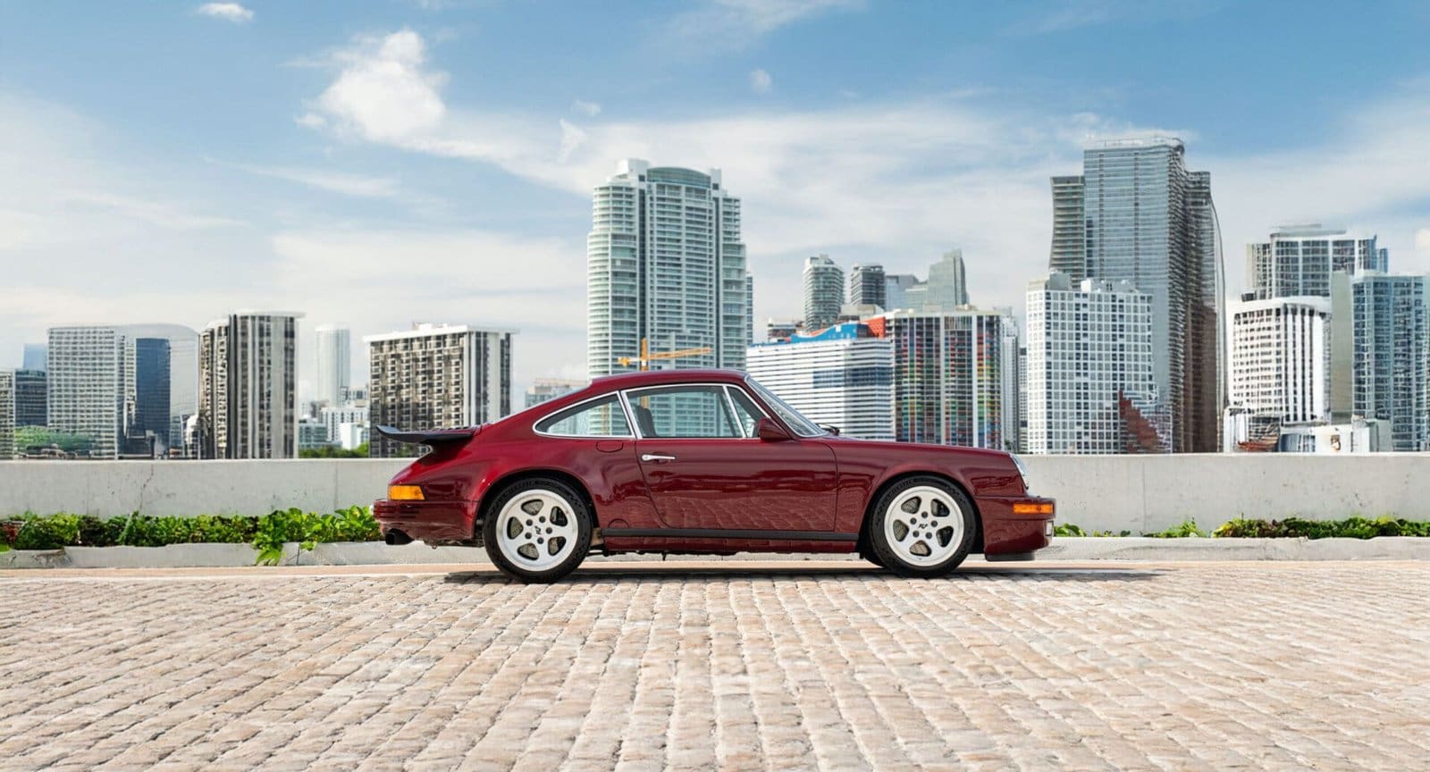 Known for redefining performance benchmarks in the late 1980s, the Yellowbird famously outpaced icons like the Porsche 959, Ferrari Testarossa, and Lamborghini Countach, achieving 0–60 mph in just 3.7 seconds and a top speed of 211 mph. This CTR1 Lightweight was built for German client Dr. Dietrich and features a bespoke specification finished in paint-to-sample Bordeaux Red over Nutria black leather. Enhancements include a RUF sports suspension, a custom telemetry gauge, 959-style door seals, and lightweight interior fittings.