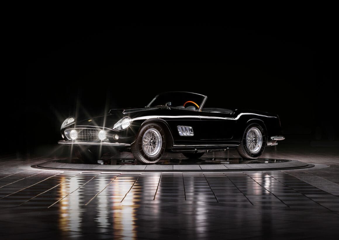 The undisputed centerpiece is the Ferrari 250 GT LWB California Spider, chassis 1431 GT—one of just 50 long-wheelbase examples built and one of only 30 steel-bodied cars. Factory-equipped with covered headlamps and drum brakes, it is further distinguished as the final inside-plug Type 128 D V-12 California Spider produced.