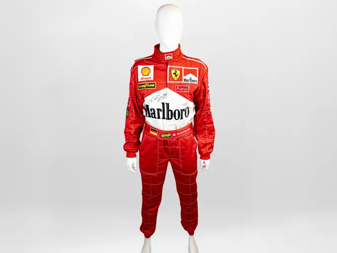 Among the standout lots is a 1997 Michael Schumacher Scuderia Ferrari OMP Racing Suit worn during his triumphant Monaco Grand Prix victory (estimated €30,000–€40,000), a relic of both sporting achievement and Ferrari’s legendary racing history. Also on offer is a rare 1996 suit worn at Hockenheim, and several other suits from Schumacher’s Benetton days, including his championship-winning 1995 season. For those seeking a glimpse into Schumacher’s early promise, the 1992 Benetton suit worn at the Mexico Grand Prix will be a prize catch.