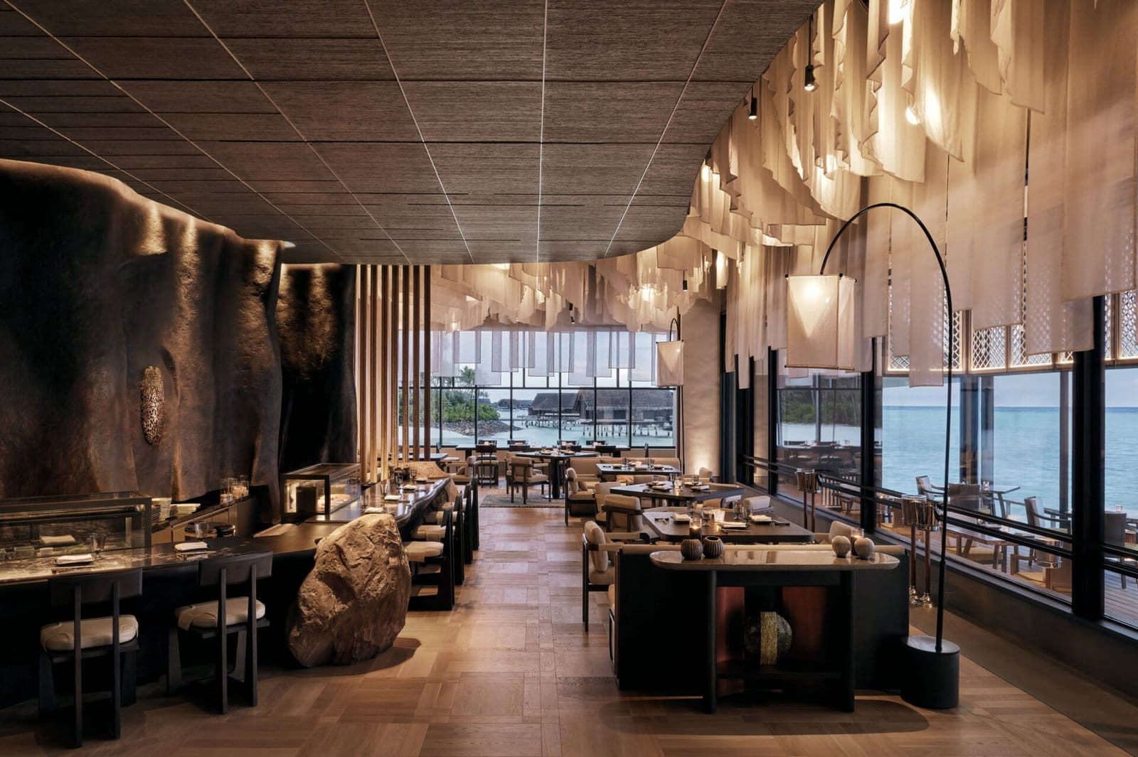 In the Maldives, Tapasake at One&Only Reethi Rah rises above the ocean with its floating glass floors and panoramic views. Fusing Japanese techniques with Mediterranean ingredients, guests are treated to sushi artistry and sake pairings, all framed by Jean-Michel Gathy’s design. As the sun dips below the horizon, cocktails and live music on the Grand Terrace create a dreamy atmosphere that defines barefoot luxury.