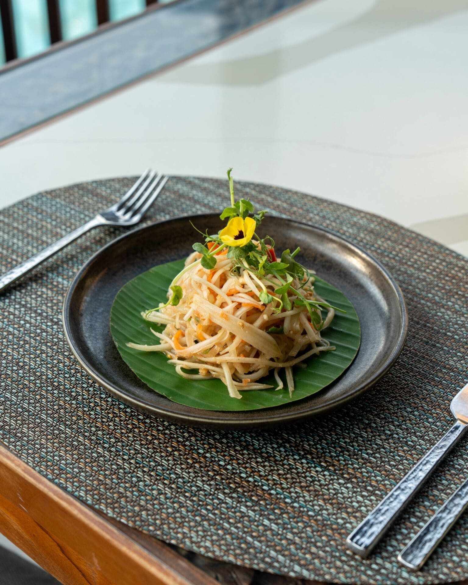 From the grill, guests enjoy banana leaf-wrapped seabass fillet, wok-tossed broccolini, and the iconic Pad Thai — a perfect harmony of textures and flavours. Rich curries, including a fragrant green curry and a spiced Massaman beef curry, are served with delicate Jasmine rice, delivering a soulful, hearty finish.