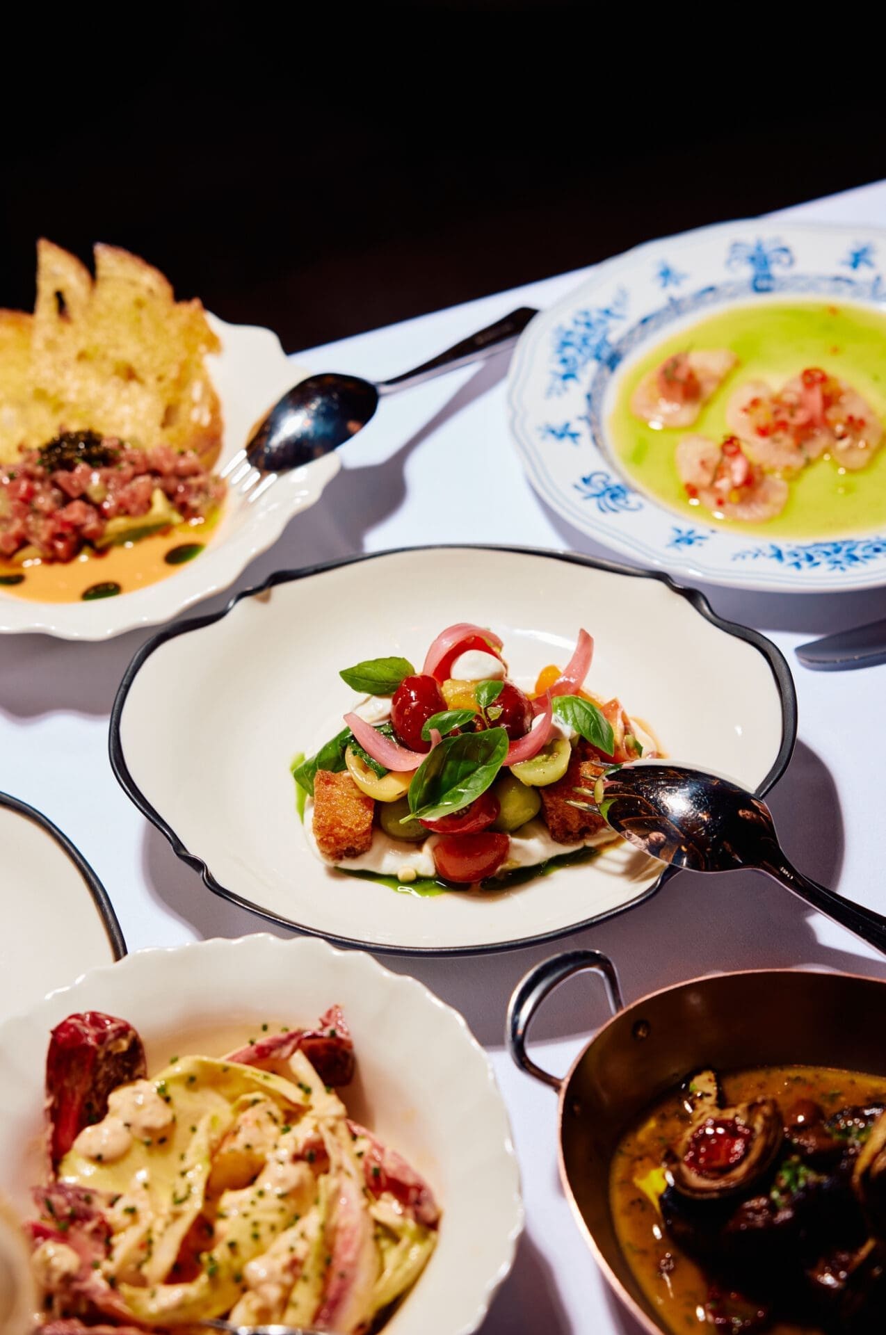 For a true showstopper, the ‘Adaline’ Crudo di Mare arrives in a cloud of mist, presenting a spread of oysters, langoustine, Mazara prawns, scallops, seabass carpaccio, yellowtail ceviche, and tuna tartare. Freshness continues in the Ricciola con Giardiniera, pairing buttery yellowtail with citrus dressing and pickled vegetables, while the Vitello Tonnato reimagines the Piedmont classic with tender veal, silky tuna sauce, and briny capers.