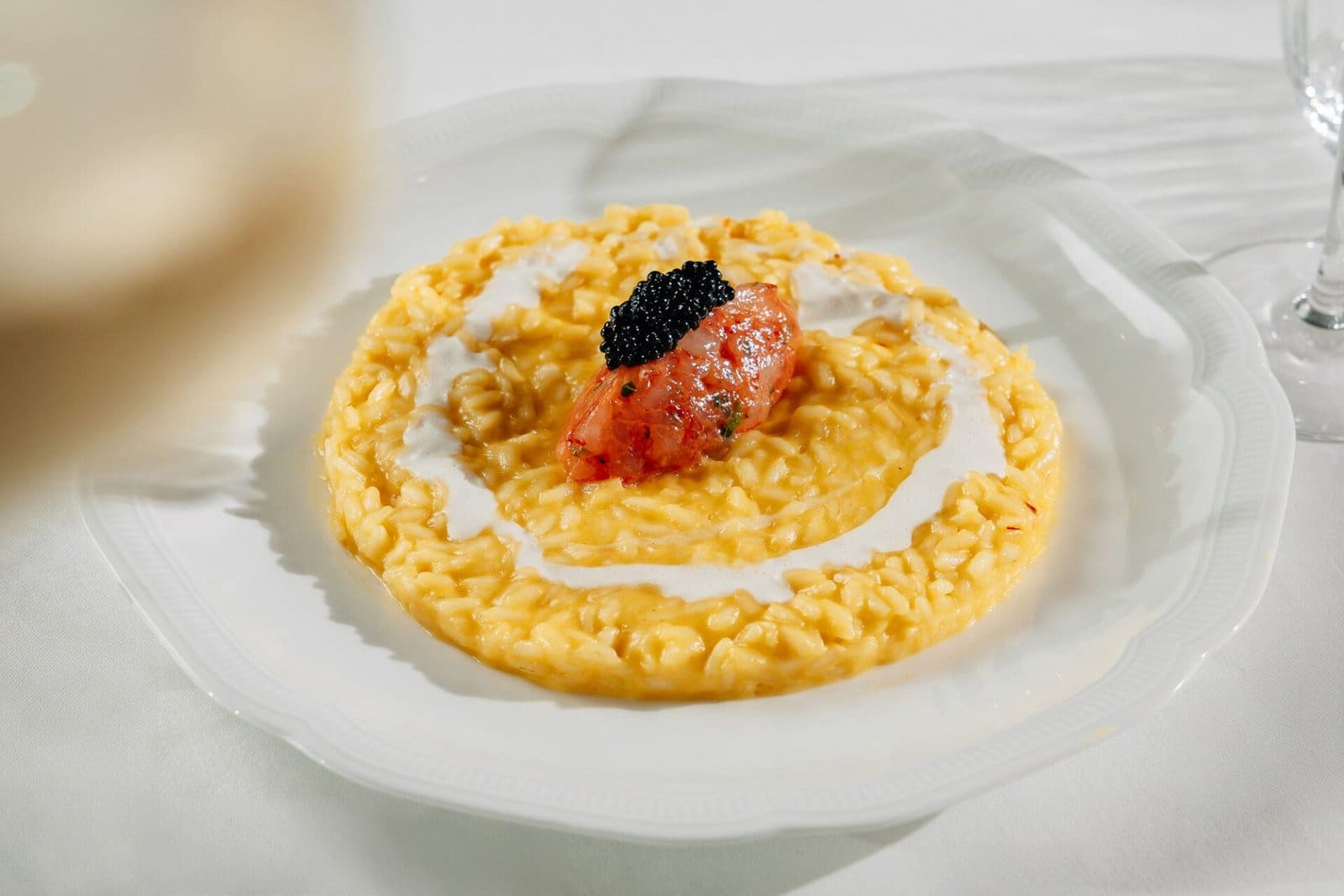 The dining journey opens with refined starters that set the tone for what follows, before transitioning into a saffron risotto built around Royal Baeri caviar and Gambero Rosso tartare. The dish captures the essence of the collaboration—comfort and elegance meeting modern technique—while remaining true to Arrogante’s expressive personality. Each course is designed to feel cohesive, guiding diners through a narrative rather than a sequence of standalone plates.