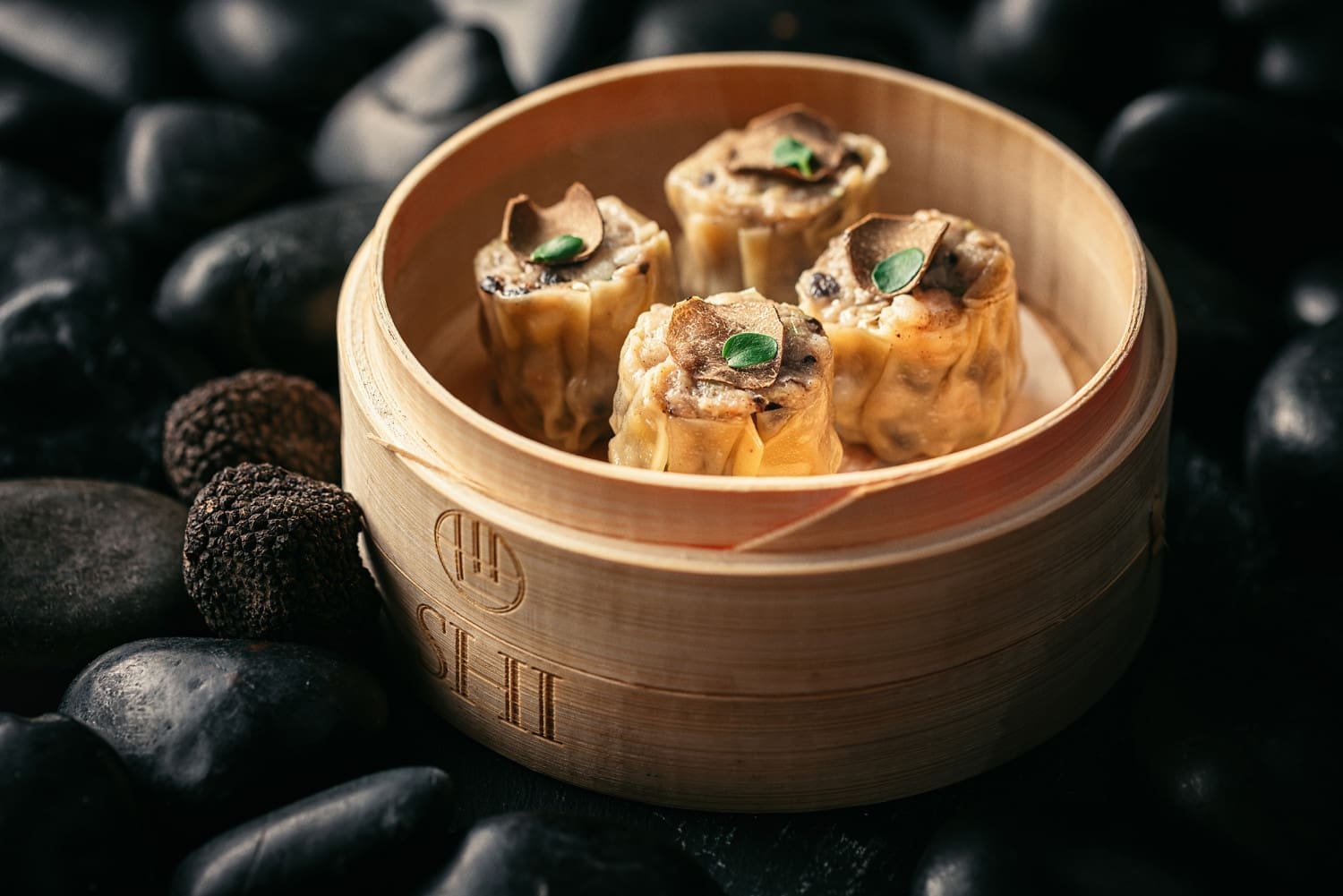 From there, the meal transitions into the comforting theatre of dim sum, where every basket reveals a new delight. Prawn Har Gau glistens beside Black Truffle Chicken & Quail Egg Siu Mai, while Mixed Mushroom Dumplings, Snow Crab Dumplings, and Chicken & Coriander Dumplings add layers of texture and flavour. SHI’s famed Peking Duck Rolls—wrapped with cucumber, leek, sweet melon, and hoisin sauce—remain an anchor of familiarity and indulgence.