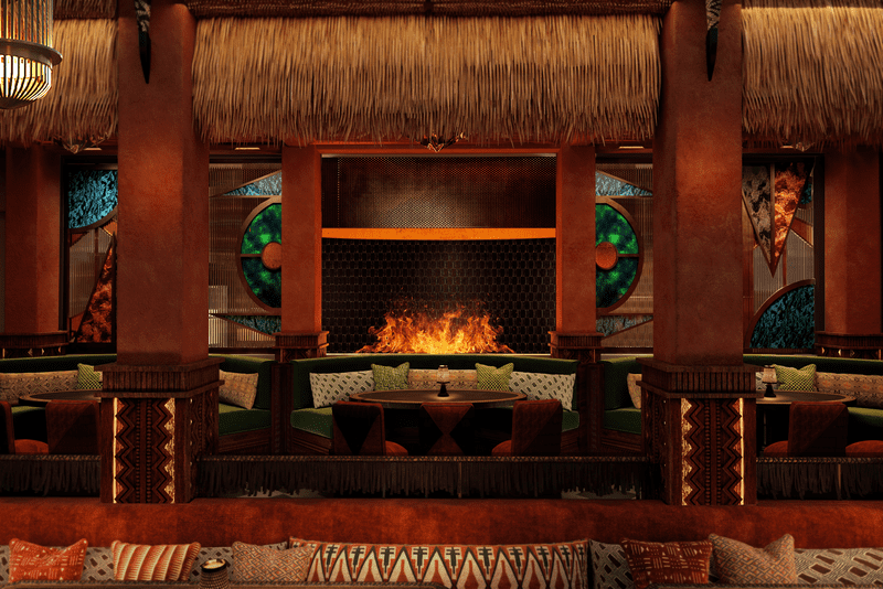 The space itself is a tribute to fire’s visceral beauty. Designed with warm, earthy textures and glowing amber tones, INA’s bespoke interiors offer a seamless blend of coastal calm and smouldering sophistication. Whether dining under the stars with the retractable roof open or enjoying the refined comfort of the climate-controlled interiors, guests are enveloped in an atmosphere that evolves from serene lunches to ambient, music-infused dinners.
