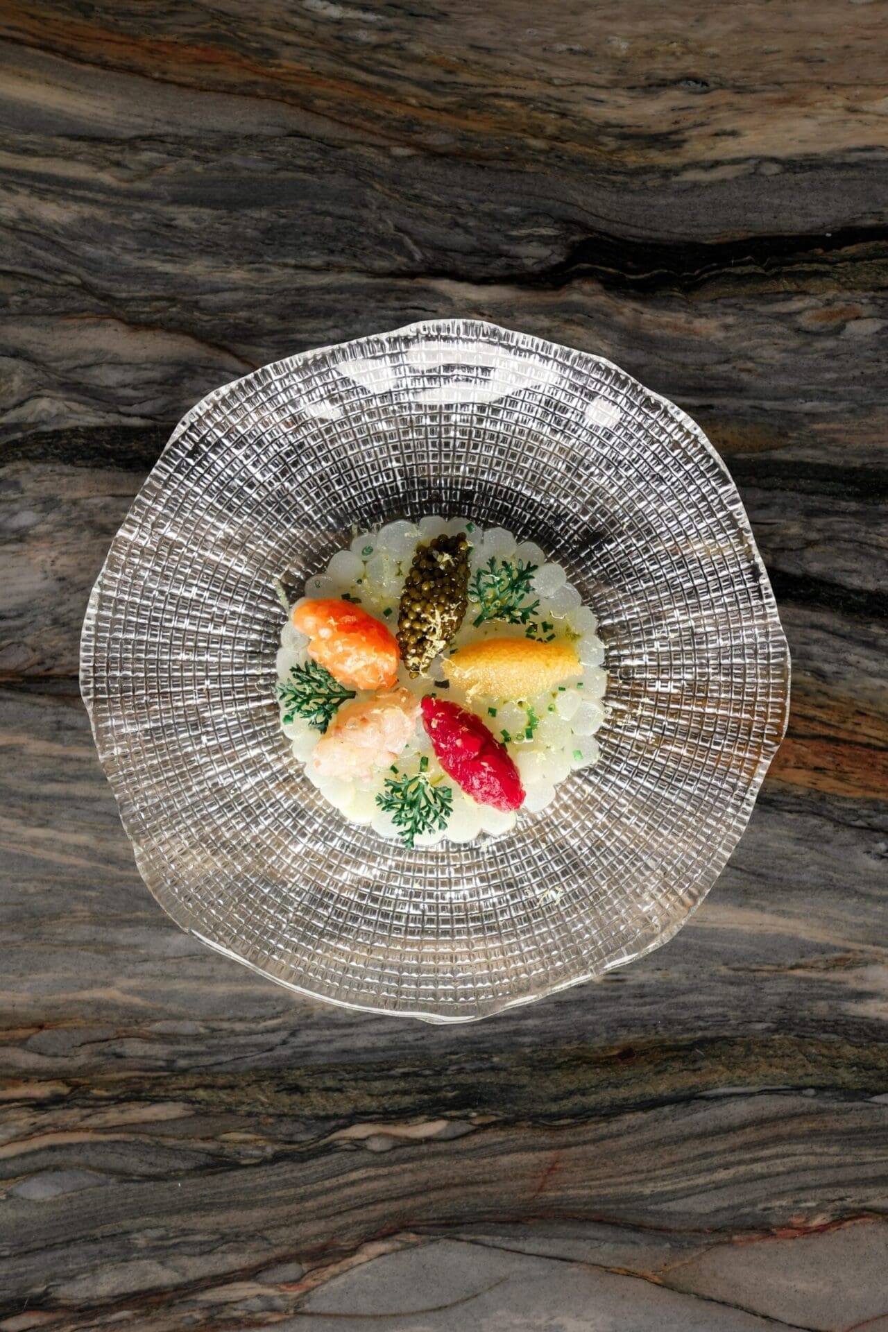 Chefs Artem Losev and Vitaly Istomin, known for their fearless creativity and precise technique, have designed the menu with a keen sense of contrast—each course unfolding with layers of flavour and tactile nuance. The opening act alone sets the tone: Eastern scallops delicately paired with black caviar, Wagyu fried dumplings with a crisp golden edge, and tender crab balanced by the earthiness of morels. These starters don’t just whet the appetite—they establish a dialogue between cultures, ingredients, and textures.