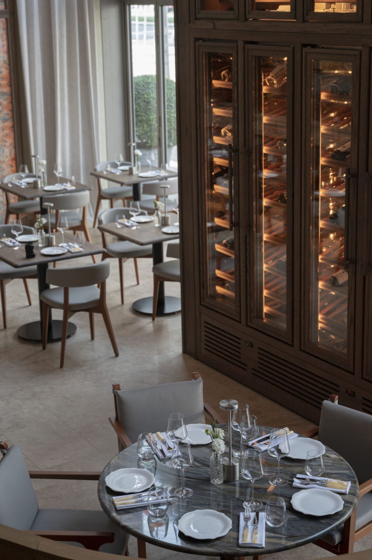 Mains continue this thoughtful interplay. The now-signature caviar pizza, elevated with chorizo and buffalo mozzarella, challenges expectations with flair, while slow-cooked beef ribs paired with a silky shallot purée offer a comforting, robust anchor to the experience. The wood-fired influence remains, but it is filtered through the lens of a global pantry and a distinctly European sensibility.