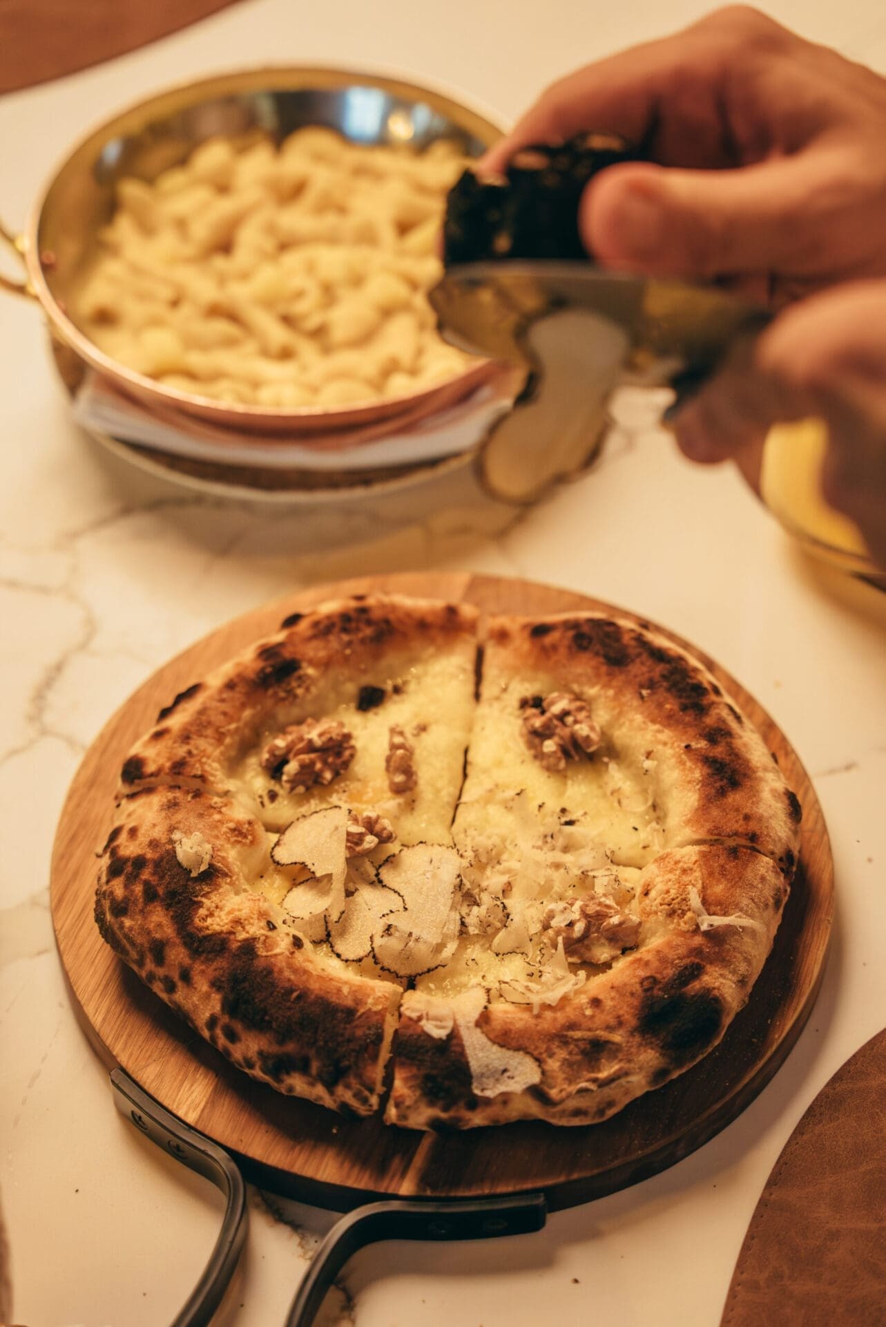 Together, the chefs have curated a five-course tasting menu that reflects both their culinary identities while spotlighting fresh Omani produce. Expect a fusion of flavours that journeys across continents—from Wagyu Tartare Cones and traditional Portuguese Cod Cakes to the unmistakable richness of Sicilian Caponata. Dishes such as Truffle Pizza and Vitello Tonnato nod to Italy’s timeless flair, while Garlic Prawns and a standout Pasta Mista “Allo Scoglio” featuring Omani lobster and octopus express the duo’s shared coastal inspiration.