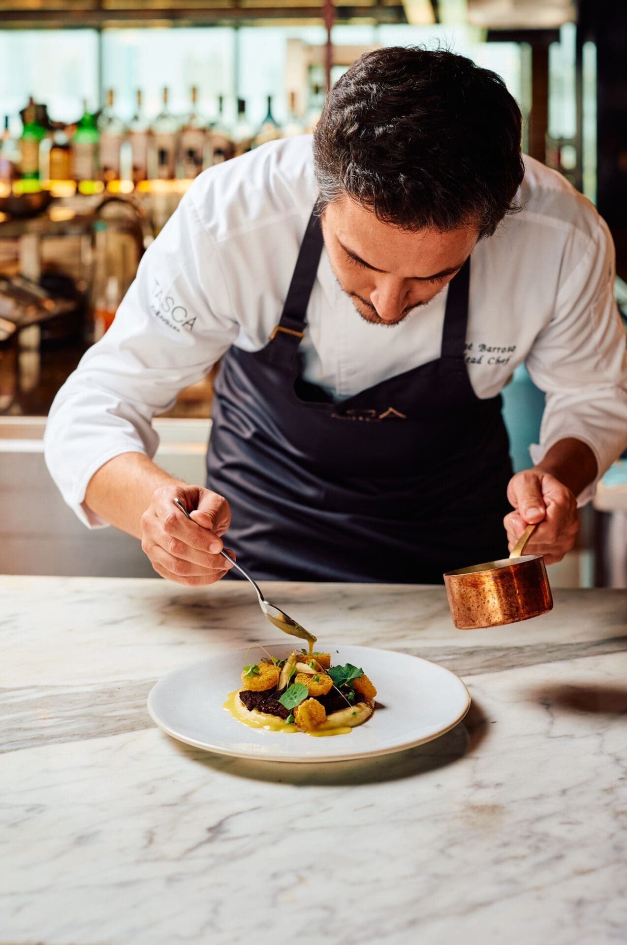 In contrast yet perfect harmony, Chef José Barroso draws upon Portugal’s bold culinary identity. Having honed his craft in Lisbon, New York, and now Dubai, he leads Tasca—the UAE’s first Portuguese restaurant to receive a Michelin star, a title it has held for four consecutive years. Barroso’s cooking is heartfelt and expressive, steeped in family memories and shaped by regional ingredients, resulting in dishes that are soulful and generous in spirit.