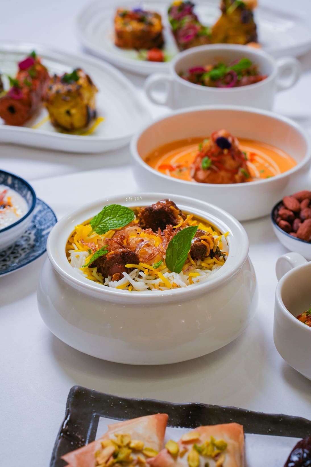 The mains are where tradition meets indulgence. Choose from Coconut Prawn Curry, Butter Chicken, or Mutton Dum Biryani, while vegetarians can explore bold dishes like Paneer Roulade Makhani, Saag, or the standout Raw Jackfruit Dum Biryani. Every main is paired with Roti or Naan, Steamed Basmati Rice, and a refreshing Avocado & Raw Mango Kachumber Salad. For an added dose of richness, a side of Dal Makhani is available for AED 30.