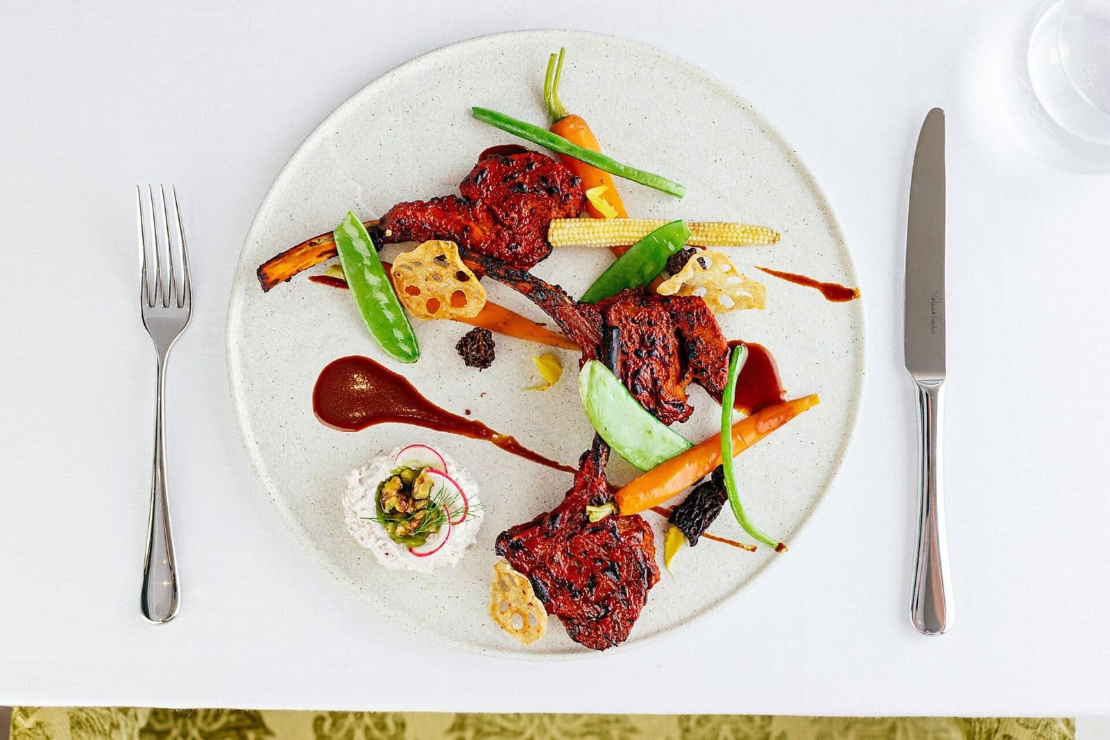 The meal concludes on a sweet high with a choice between the photogenic Mango Shrikhand Tart and the luscious Rasmalai, ensuring every guest ends their evening with satisfaction and style.