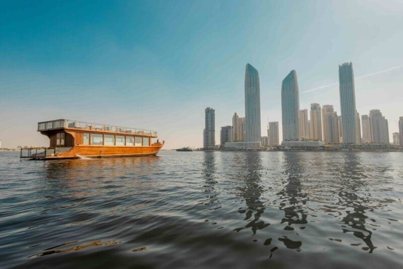 Every Sunday morning, the elegant restaurant dhow departs at 9:30 AM for a two-hour cruise through the heritage-rich waters of Dubai Creek. With the morning light reflecting off gently rippling waters, guests are treated to uninterrupted views of the Al Fahidi District, the bustling Gold Souq, and the time-worn dhow wharfage. The route also includes the storied Maktoum Bridge—a symbolic threshold between Dubai’s proud past and dazzling present. A knowledgeable onboard guide adds subtle narrative to the experience, offering insights and stories of each landmark in a conversational, non-intrusive manner.