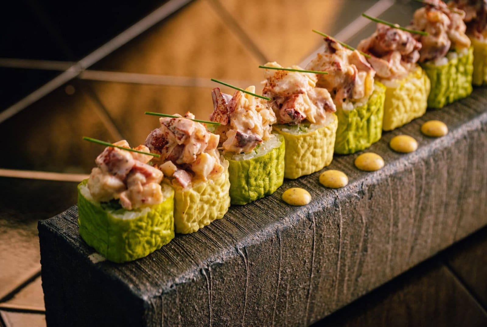- From the Middle East: Indulge in the exquisite Wagyu Dhabi Roll (AED 149), crafted with Japanese A5 wagyu, king oyster mushroom, kampyo, and truffle aioli. Dubai’s own Samba Dubai Roll (AED 168) blends Maine lobster, mango, avocado, soy paper, and aji honey truffle. The Samba Doha Roll (AED 178) impresses with Maine lobster, sesame aioli, crispy leek, and crispy rice.