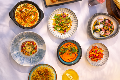 The culinary voyage is as evocative as the setting itself. Delicacies such as Seabass del Sol, Balfego Bluefin tuna crudo, and Charred Mediterranean octopus showcase the abundance of the sea, while the St. Tropez miso verde salad and sweet & tangy chicken reinterpret Riviera classics through a Pan-Asian lens. Each plate is not just a dish but a composition—artful, precise, and alive with the freshness of coastal living.