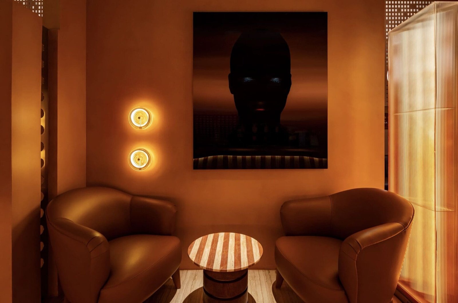 The interiors form the emotional backbone of the experience. Inspired by desert minimalism and futuristic architecture, the design blends natural materials such as travertine, stone, brass, marble, and fine wood into a cohesive and cinematic space. Sculptural elements and warm lighting create an atmosphere that feels both expansive and intimate, allowing guests to move seamlessly between energy and retreat.