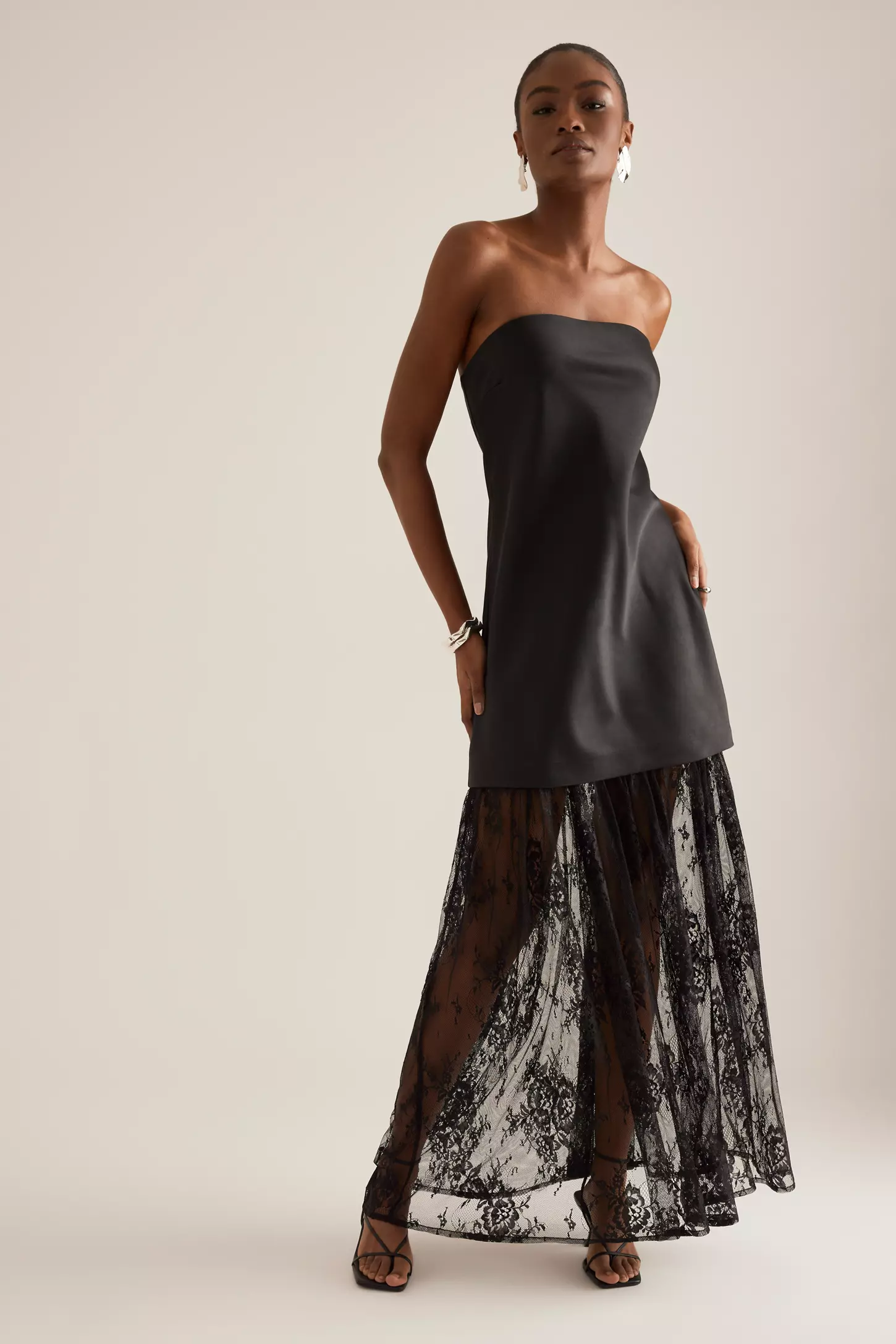 The apparel selection reflects the brand’s hallmark approach—dressing the modern woman with effortless grace. Crisp cotton tops with artisanal embroidery and seashell-detailed halter crop tops capture summer’s carefree spirit, while tailored denim vests, wide-leg trousers, and flowing maxi skirts bring sophisticated structure to weekend wear. Silky slip dresses in soft blush and floor-length gowns with intricate cutouts reimagine eveningwear, while sheer lace panels and dramatic silhouettes provide a bold edge for those seeking romance with a contemporary twist.