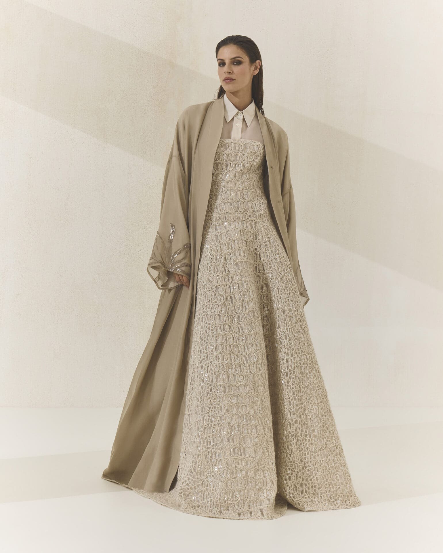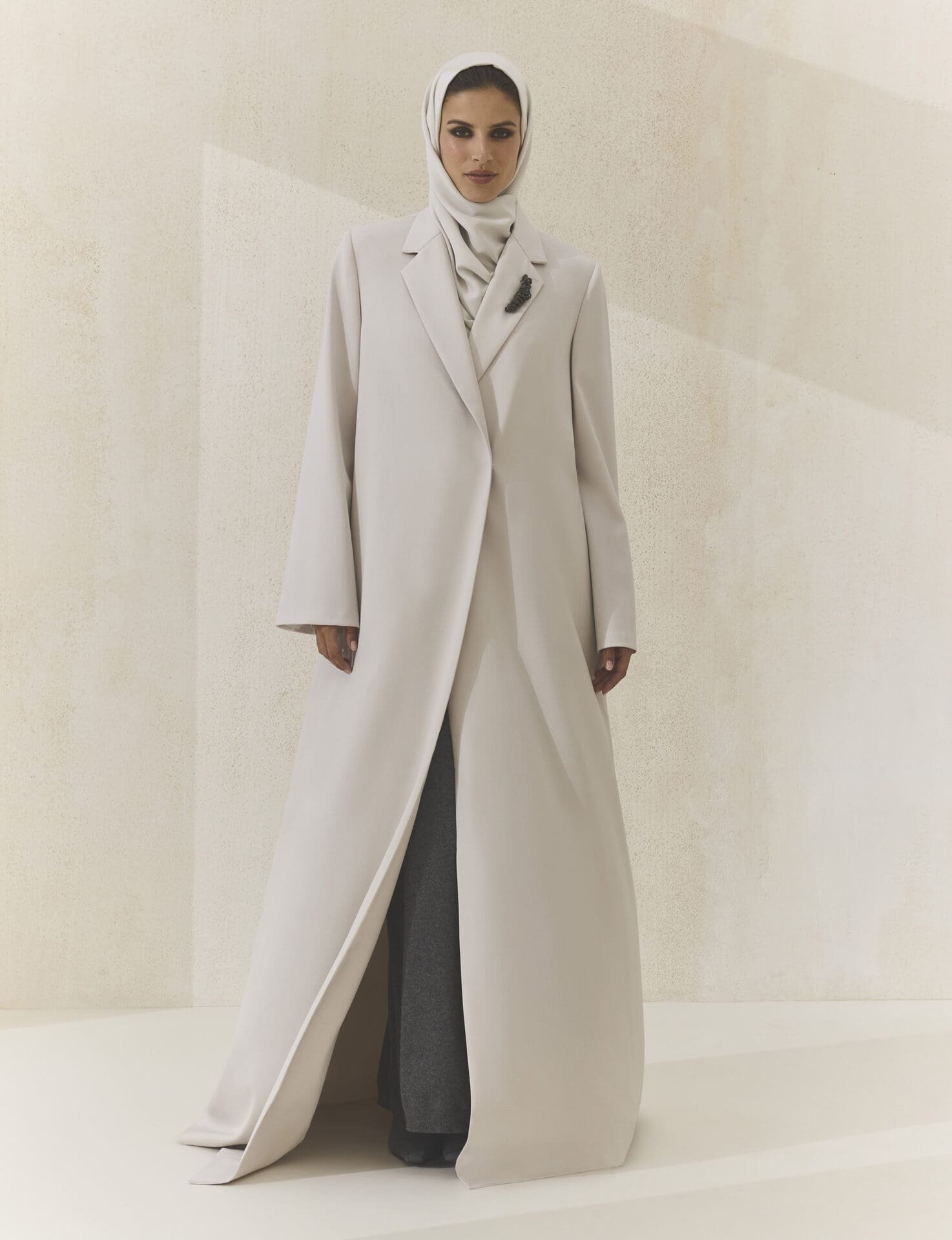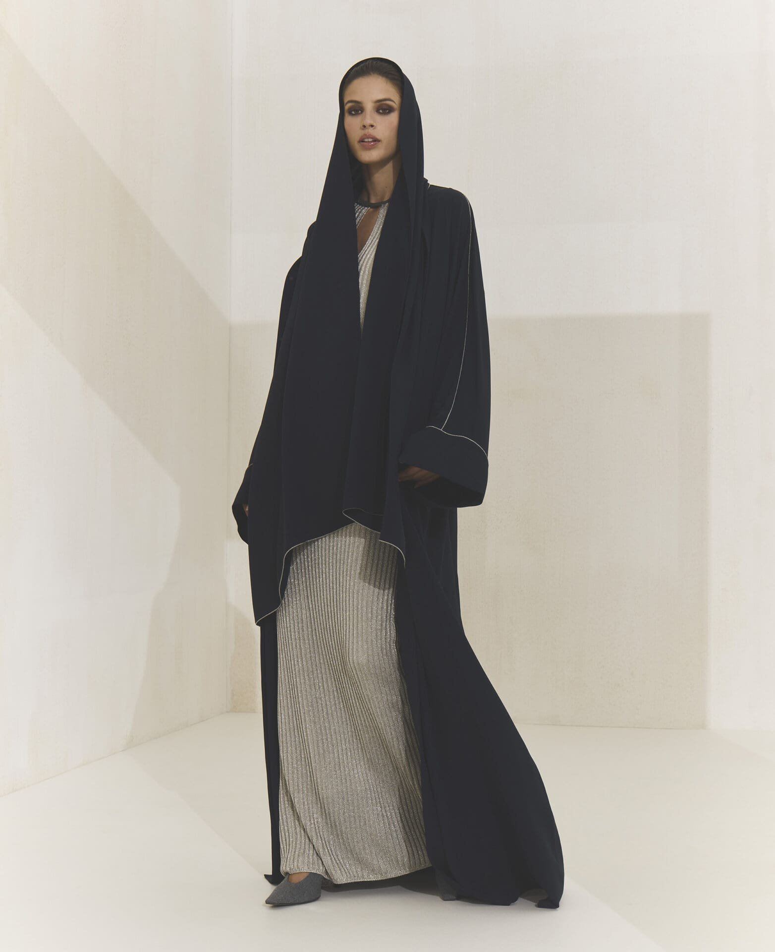 Tailored yet free-flowing, each design reflects a careful balance between structure and softness. The abayas are conceived to move effortlessly with the body, embodying lightness while maintaining a sense of architectural precision. This interplay creates garments that feel timeless yet unmistakably contemporary.