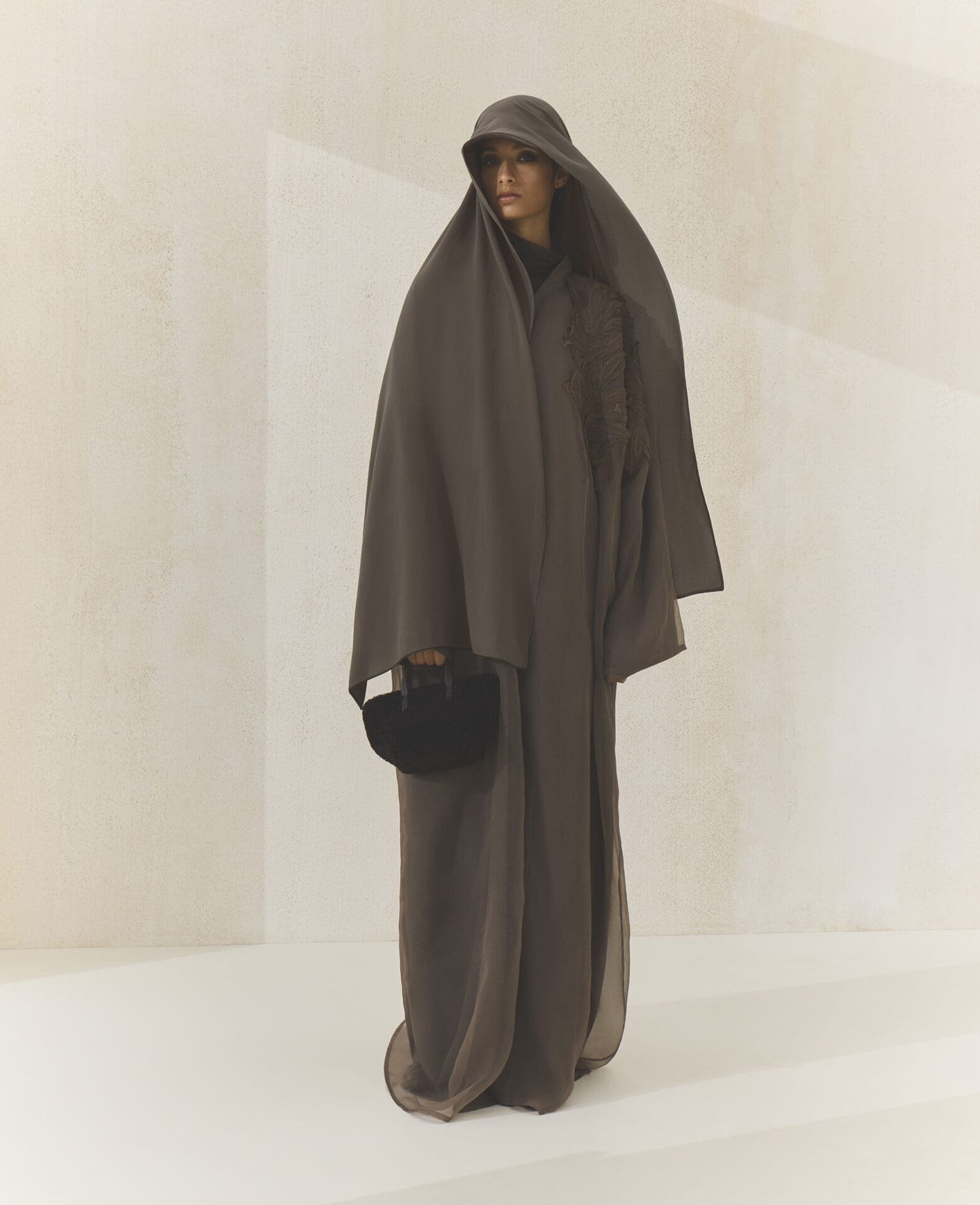 Accessories further elevate the narrative with discreet sophistication. Textural contrasts and subtle detailing complement the abayas, adding dimension without distraction. These considered accents reinforce the maison’s commitment to harmony across every element of dress.