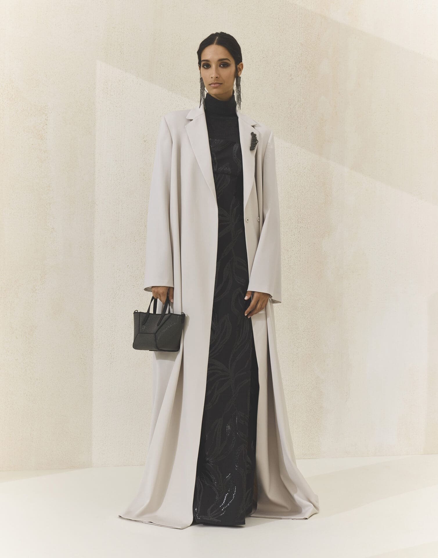 The Fall Winter 2025 Abaya Capsule Collection by Brunello Cucinelli presents a thoughtful dialogue between tradition and modern expression, offering a wardrobe that feels both composed and instinctively fluid. Rooted in the maison’s philosophy of quiet luxury, the collection reinterprets the abaya through refined silhouettes that prioritise comfort, movement, and understated elegance.