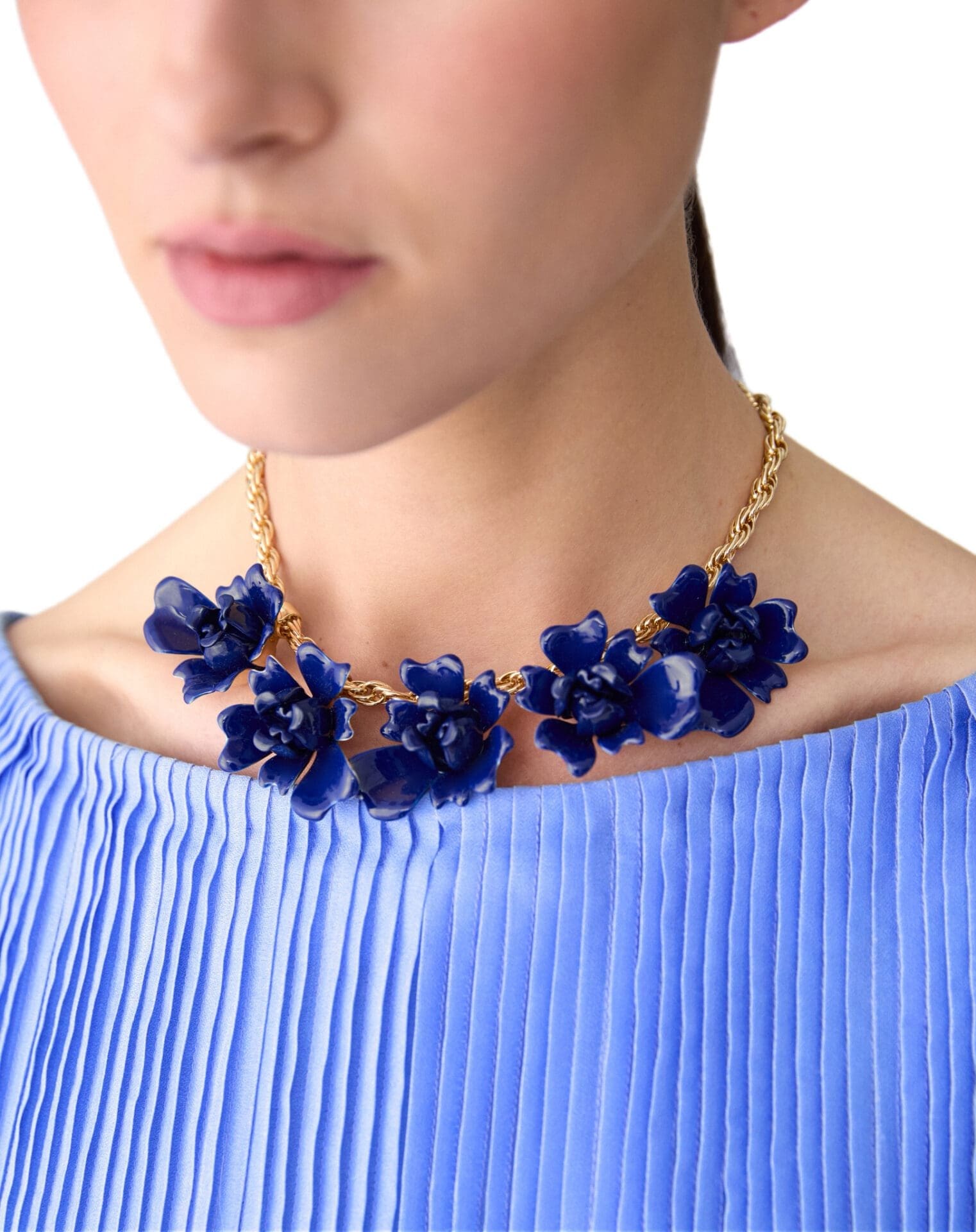 Color played its own symphony. Inspired by Sonia Delaunay’s Rhythm Color, a piece Gordon admires at the Metropolitan Museum, the collection moved in harmonious tones. Cornflower blue appeared in pleated pintuck dresses and lace separates, striking a delicate counterpoint against gold, black, and the subtle luster of lurex. The palette, while diverse, felt like a carefully orchestrated garden in full bloom.