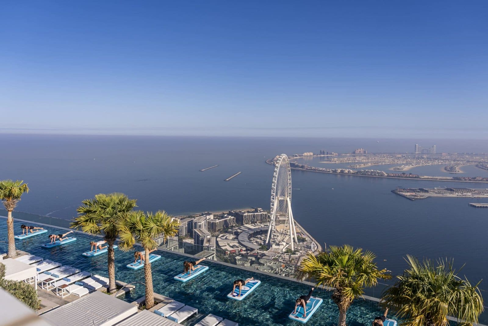 Set against sweeping ocean views, each experience begins with a 40–50 minute yoga and pilates session led by expert instructors. The classes are held on floating rafts in the rooftop pool, blending balance, mindfulness, and movement into a moment of pure serenity. Afterward, guests are invited to unwind with a two-hour pass to the infinity pool — a tranquil reset high above the city.
