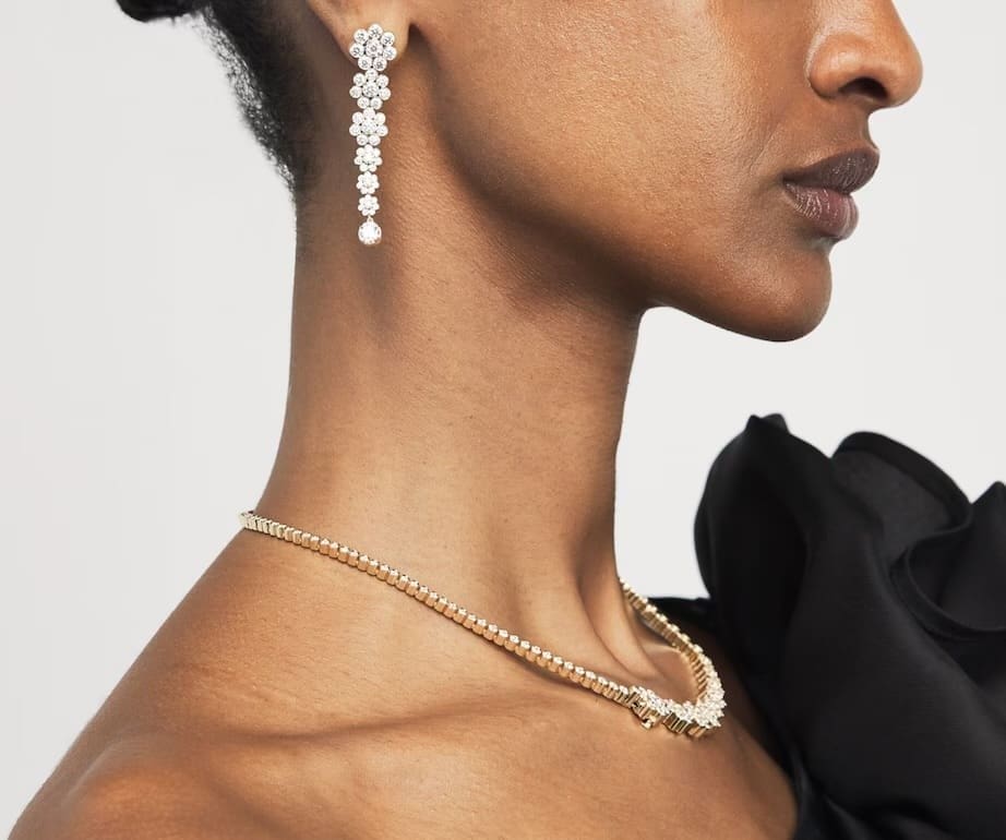 The collection begins with jewellery—timeless pieces that speak to resilience and sentiment. Sophie Bille Brahe’s Fontaine de Fleurs Earrings, crafted in yellow gold and diamonds, transform the delicacy of a bloom into a sculptural symbol of endurance. Meanwhile, the Annoushka x Harrods Teddy Bear Locket Charm, adorned with tsavorites and diamonds, holds memory and meaning close, merging playfulness with profound elegance.