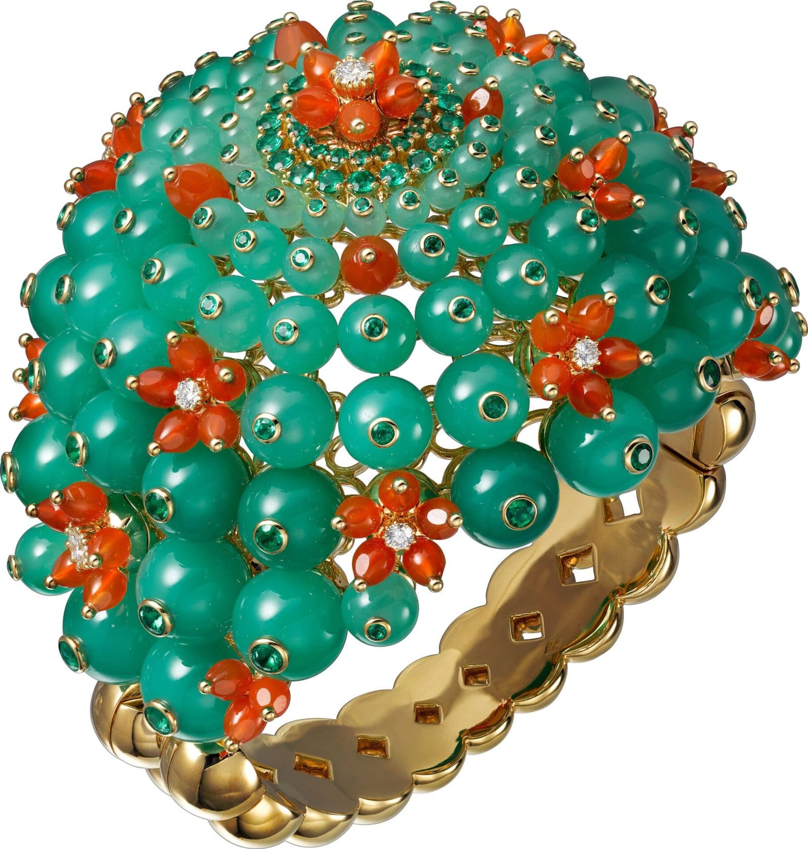 In one standout design, the mesh cactus-inspired piece captures the bold creativity of Cartier’s Cactus collection. Requiring more than seven hours to complete, its mesh silhouette is simultaneously architectural and organic—a bold declaration of innovation and tradition. Each detail, from the structural curves to the gemstone clasp, reflects Cartier’s commitment to redefining contemporary femininity with historical reverence.