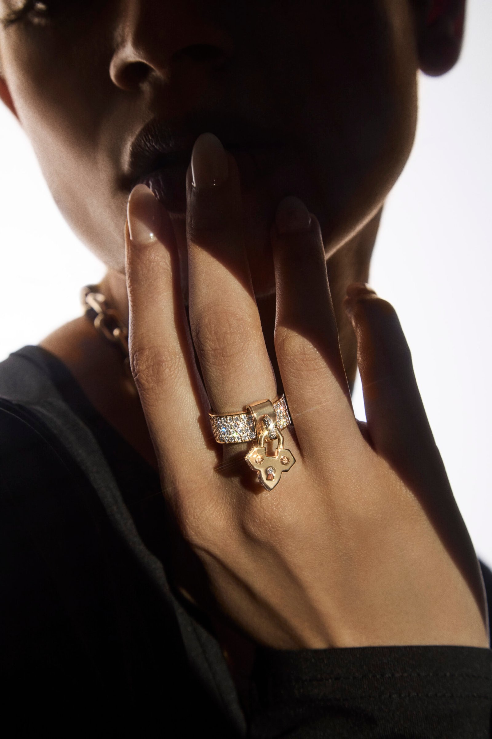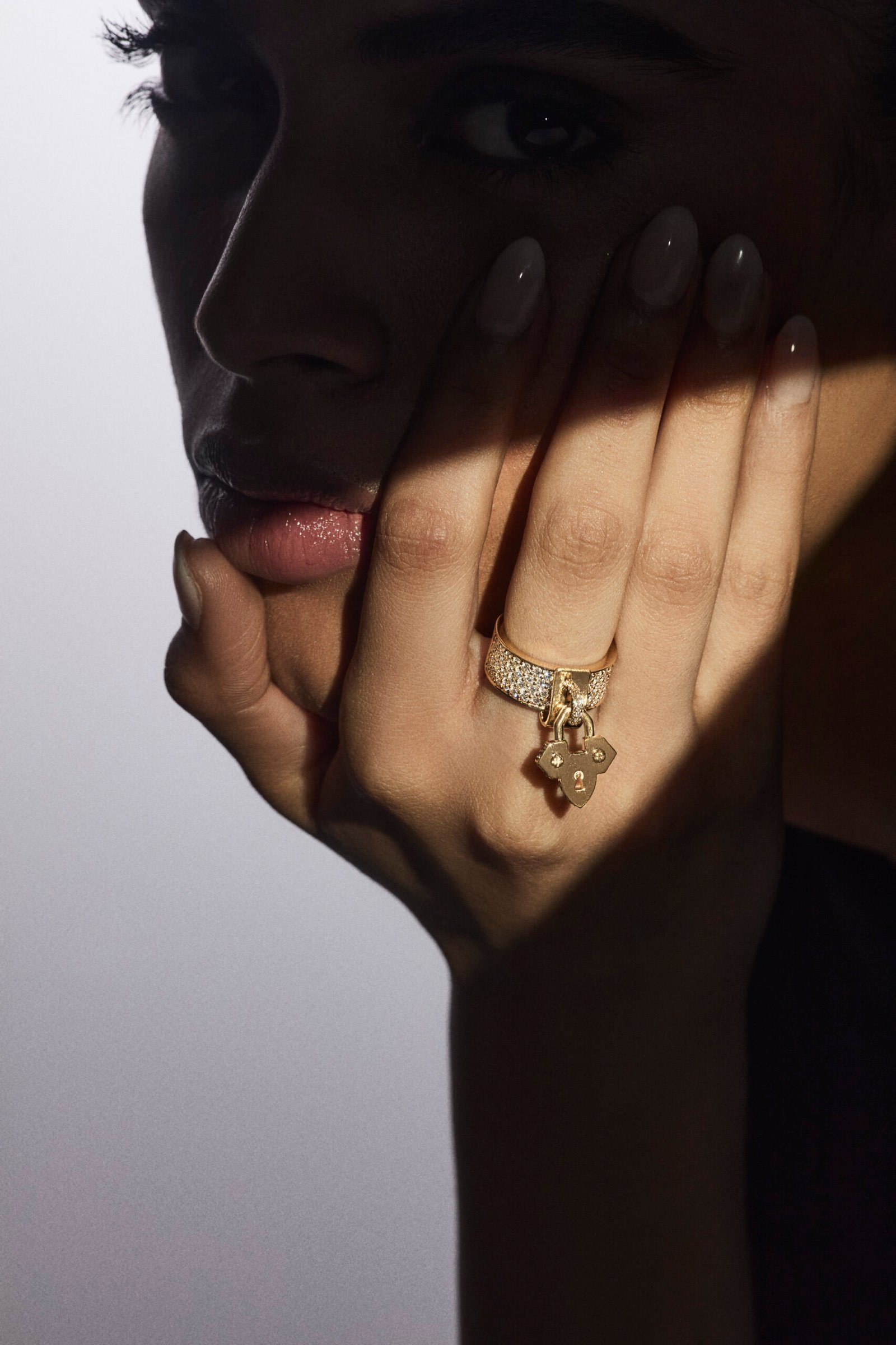 Each piece is meticulously sculpted in 18k gold and diamonds, distinguished by the Maison’s signature Aayat motif reimagined as a padlock crowned with a single coloured gemstone. Farah Khan Atelier’s design language, rooted in heritage yet expressed through modern artistry, finds new resonance in this collection — each lock embodying an emotion, a secret, and a silent story.
