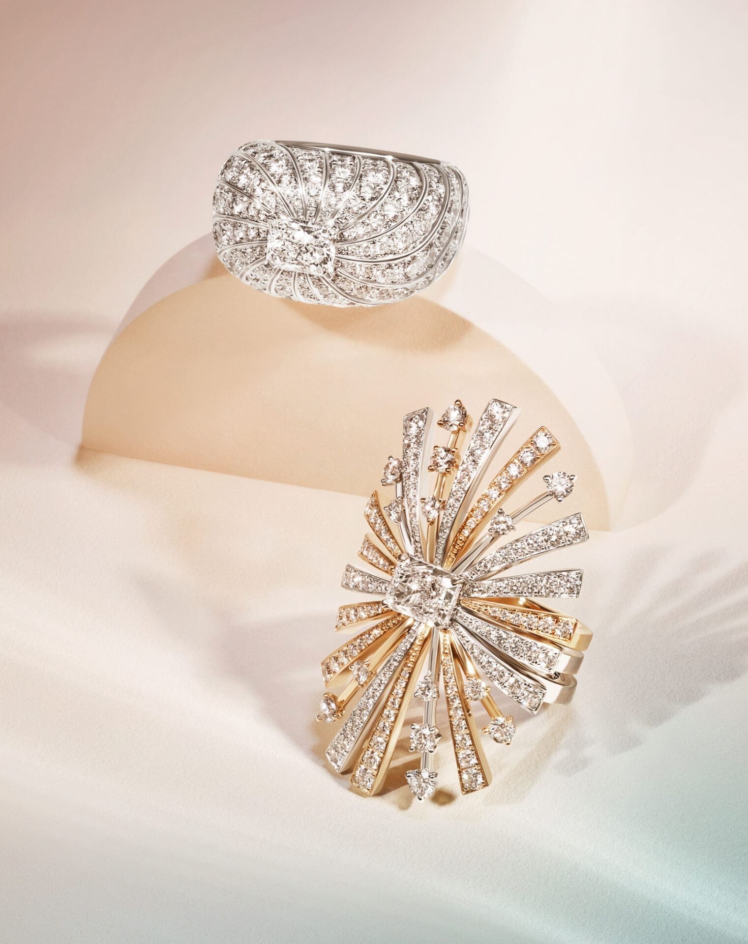 Transformable jewels—rings, earrings, and brooches—reflect FRED’s playful approach to versatility. White and yellow diamonds are set to catch the sun’s inclination, allowing the wearer to create their own interpretation of radiance. Each piece mirrors the Maison’s modern ethos: high jewelry designed not only for admiration but also for daily wear.