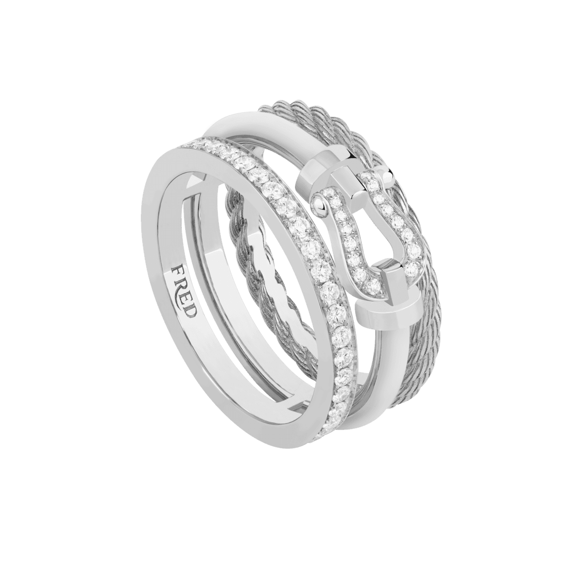 Force 10 Rise reinvents the aesthetic codes of the original collection, while introducing a more radiant, feminine twist. Drawing inspiration from one of the collection’s most prestigious high jewelry sets, FRED’s new creations bring a distinctive and daring fusion of powerful elements: the iconic cable and buckle motifs.