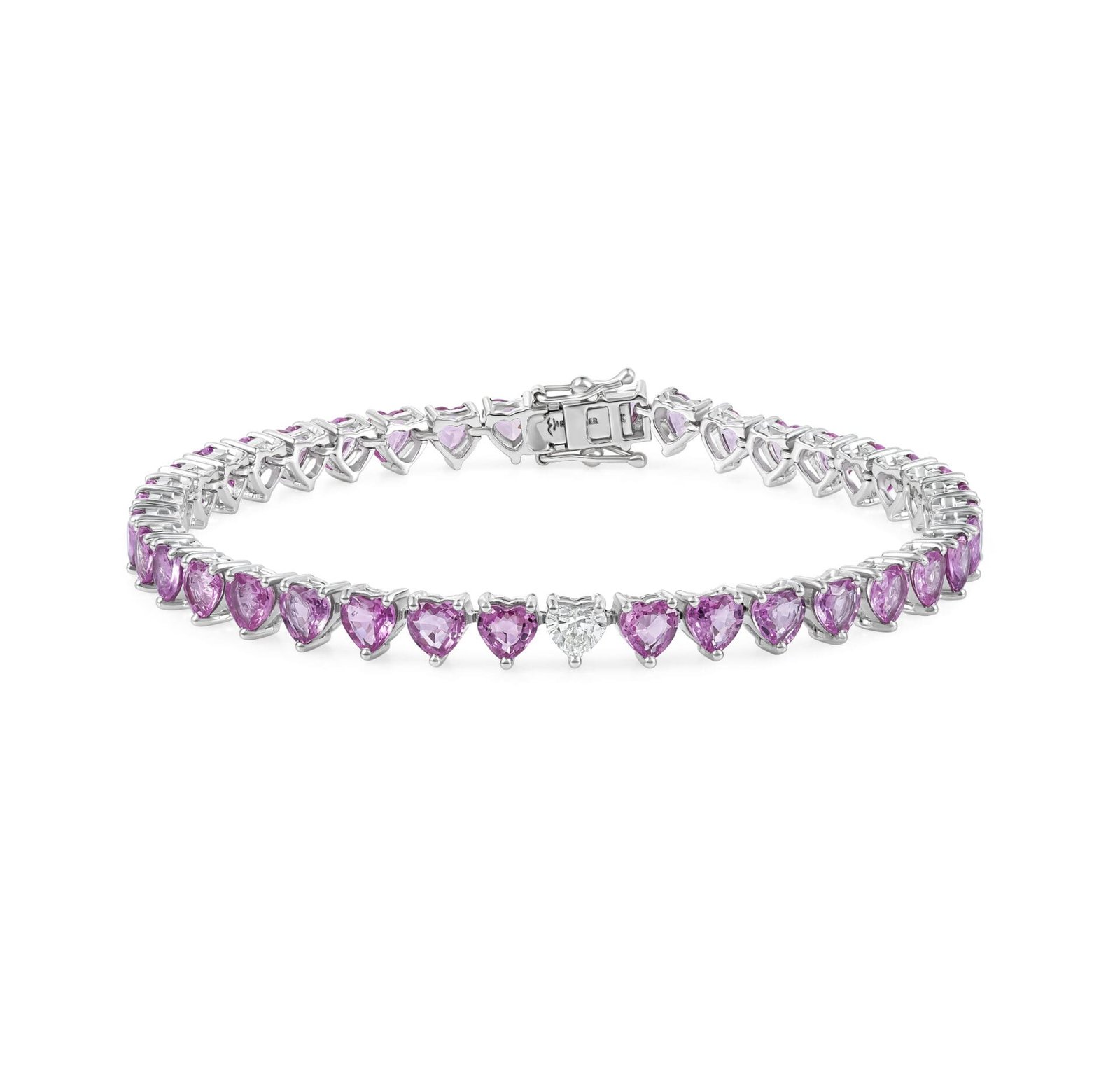 Heart-shaped designs return in a reimagined form, crafted in natural pink sapphires that soften the geometry without losing impact. Offered as both bracelets and rings, these pieces balance sentiment with modernity. The heart becomes a sculptural form rather than a symbol. Romance is expressed through shape and material, not nostalgia.