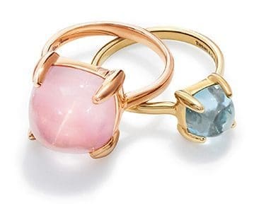 5.  Paloma’s Sugar Stacks ring in 18k rose gold with a rose quartz and 18k gold with a blue topaz.